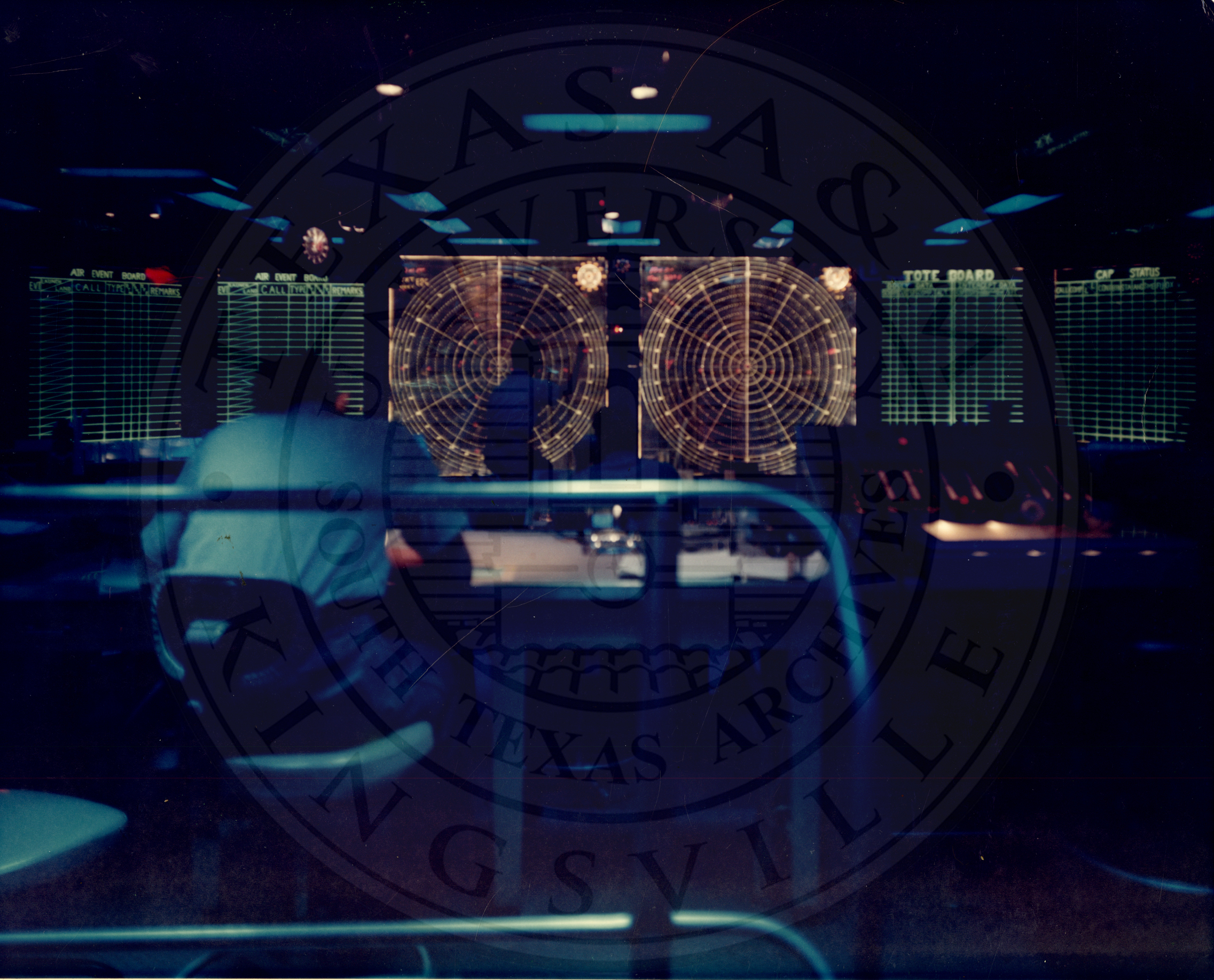 Equipment inside of a GCA (Ground Controlled Approach) radar room |
