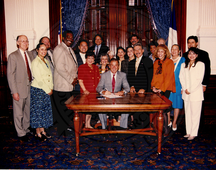 Portrait of Irma Rangel with President George W. Bush, Minnie Henderson, and other unidentified people.