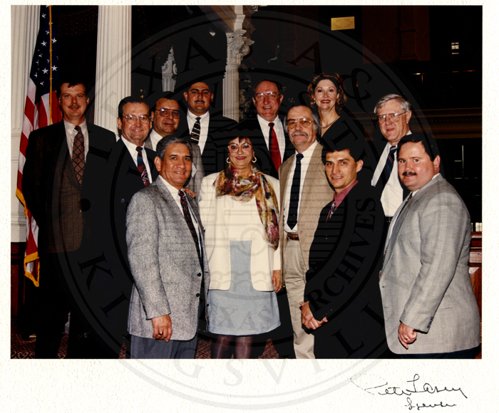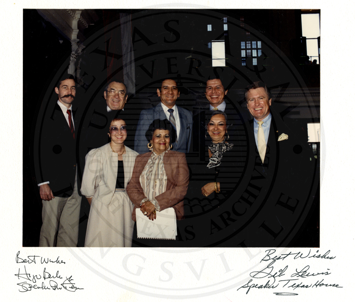 Portriat of Irma Rangel, Minnie Henderson, Gilbert Acuna, Nick Harrel, Gil Lewis Speaker Texas House, Hugo Berlanga
