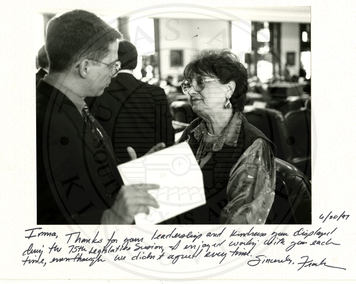 Irma, Thanks for your leadership and kindness you displayed during the 75th Legislative Session, I enjoyed working with you each time, even though we didn't agree every time.