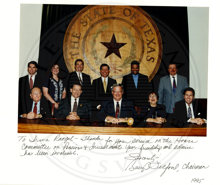To Irma Rangel - Thanks for your service on the House Committee on Pensions & Investments. Your friendship and advice has been invaluable.
