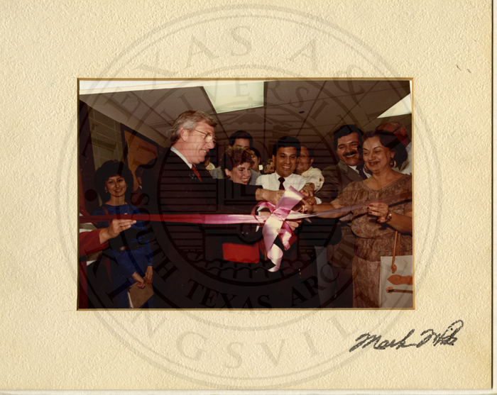 Irma Rangel with Mark White ribbon cutting ceremony.