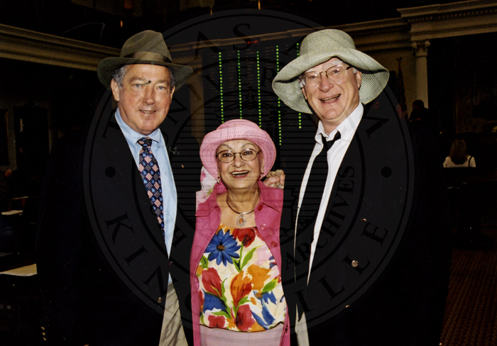 Rep. Irma Rangel and two unidentified men wearing hats.