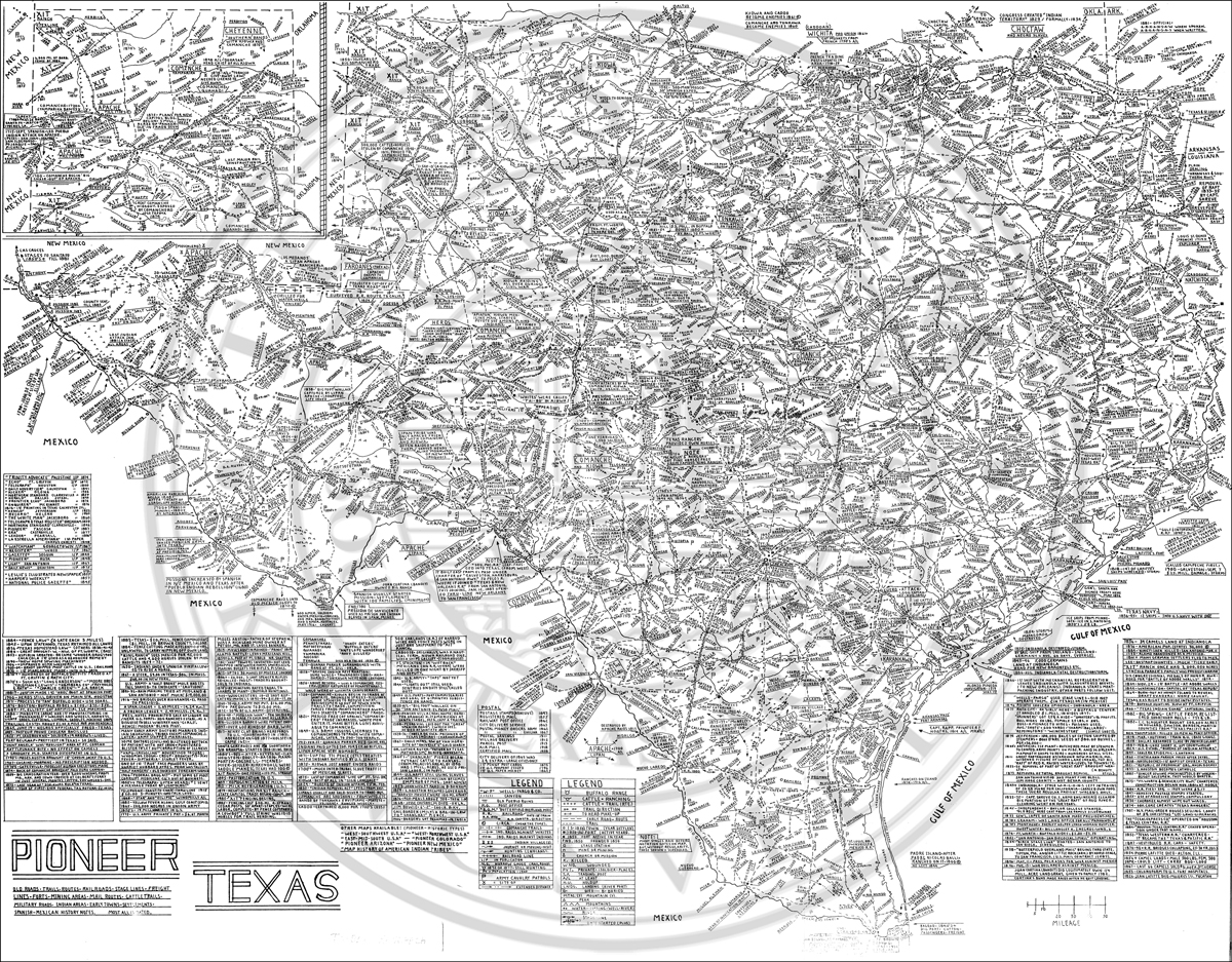 old roads, trails, routes, railroads, stage lines, freight lines, forts, mining areas, mail routes, cattle trails, military roads, indian areas, early towns, settlements, spanish-mexican history notes, tribal research. |
