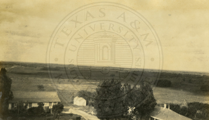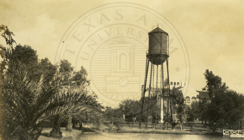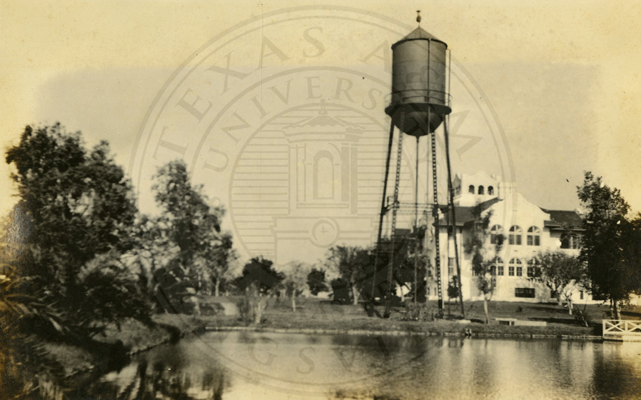 Side view of La Parra Ranch(?) house and water tank