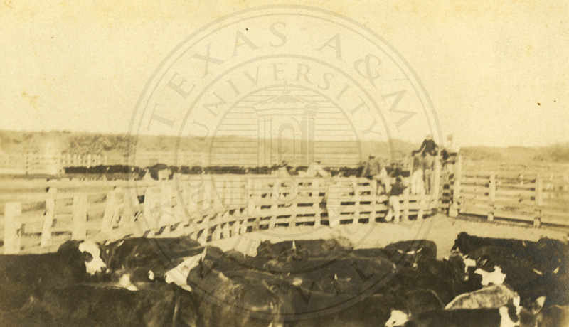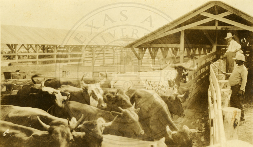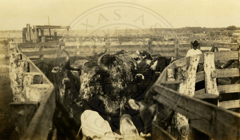 Penned cattle, probably La Parra, note Longhorn Steer