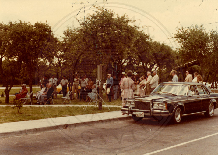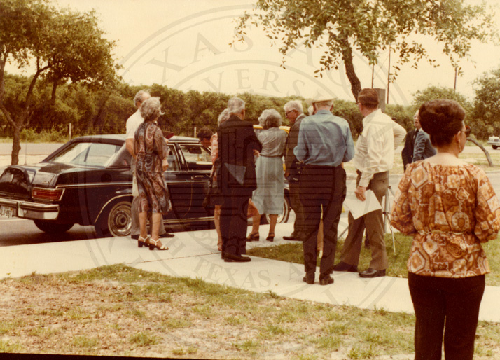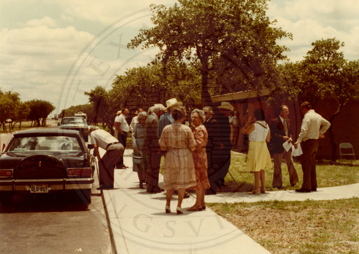 Unknown group of people gathered outside for ceremony