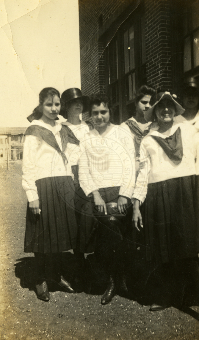 Five unidentified school girls in uniform. |