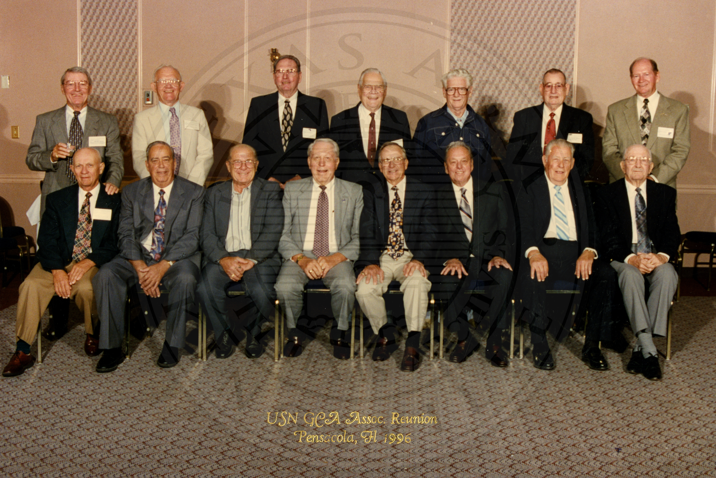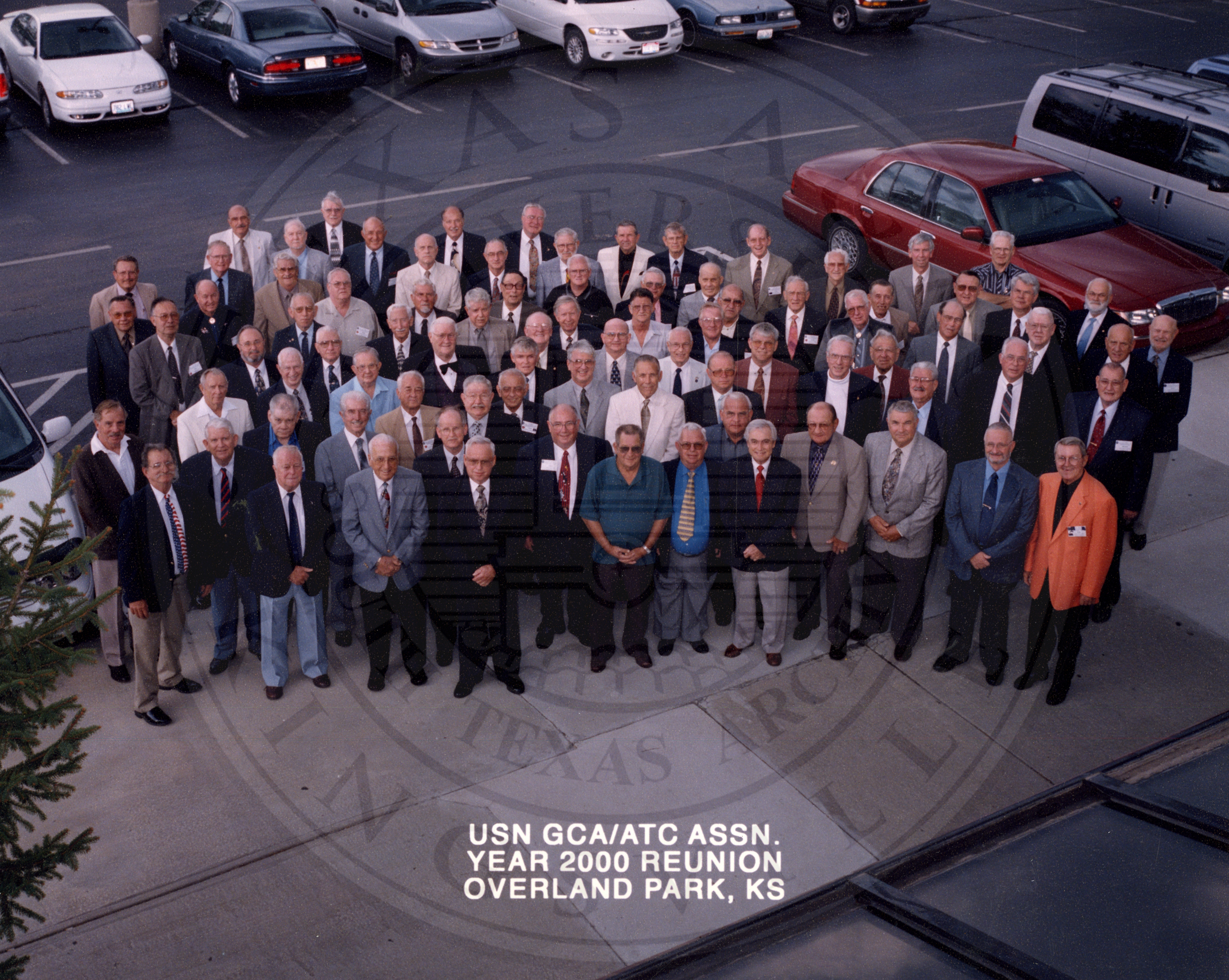 Caption: "USN GCA/ATC ASSN. YEAR 2000 REUNION. OVERLAND PARK, KS". All are unidentified men |