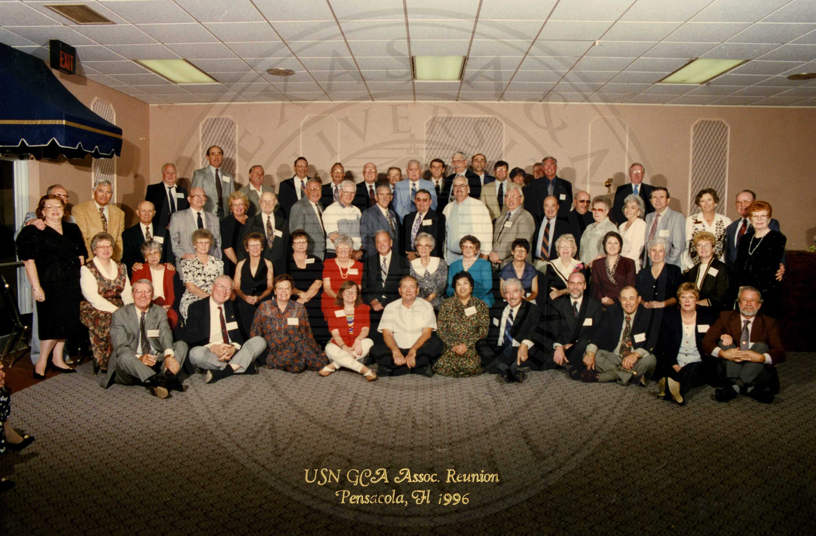 Caption: "USN GCA Assoc. Reunion. Pensacola, Fl". Large group of unidentified men and women |