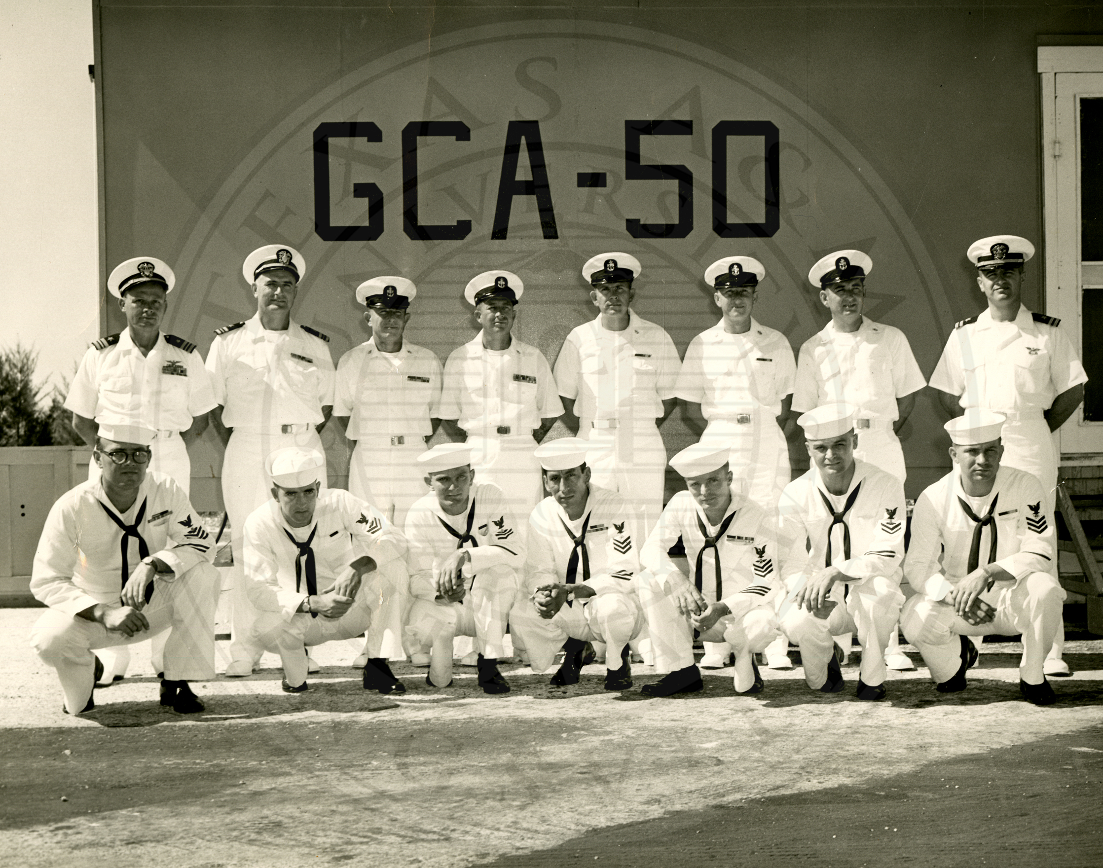 Midway Island. AN/CDN-4. GCA (Ground Controlled Approach) unit 50. 15 unidentified sailors |
