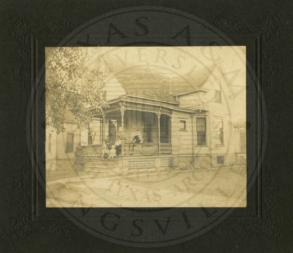 Front of house at 407 W. Seminary Ave, Bloomington, IL. David More family ca 1902. b/w. 4.75” x 3.75” |