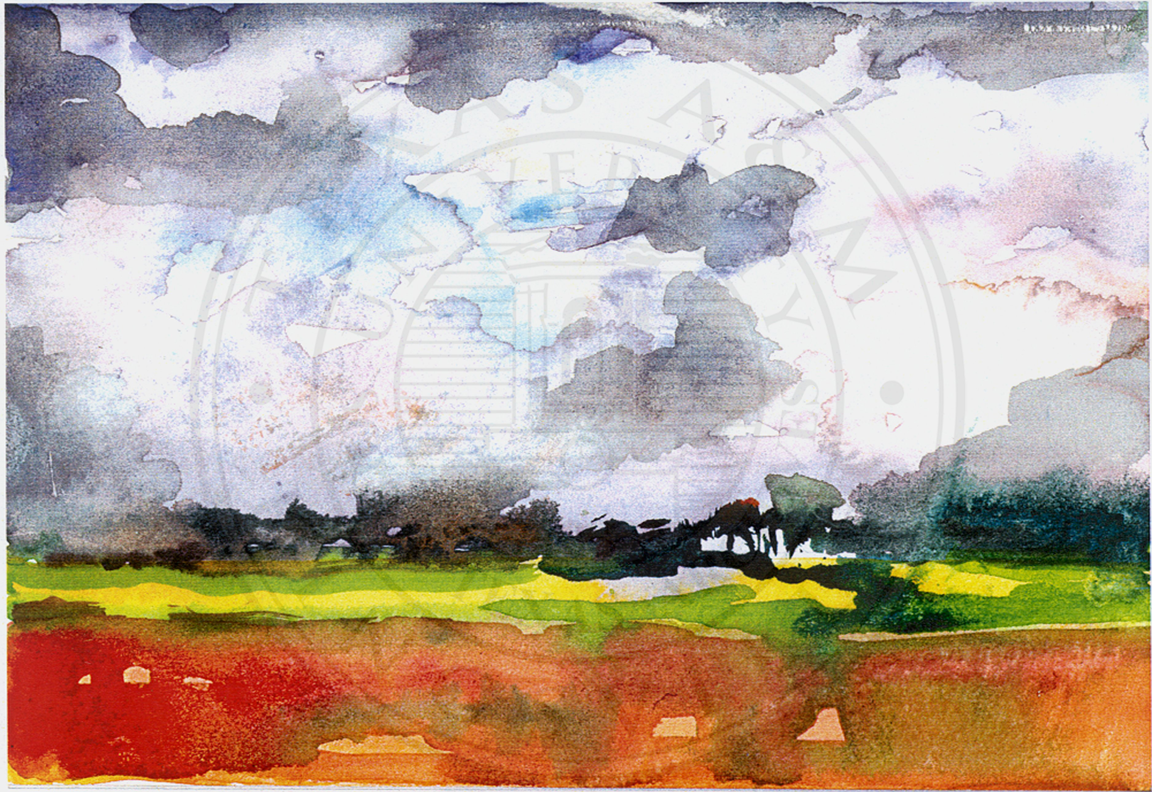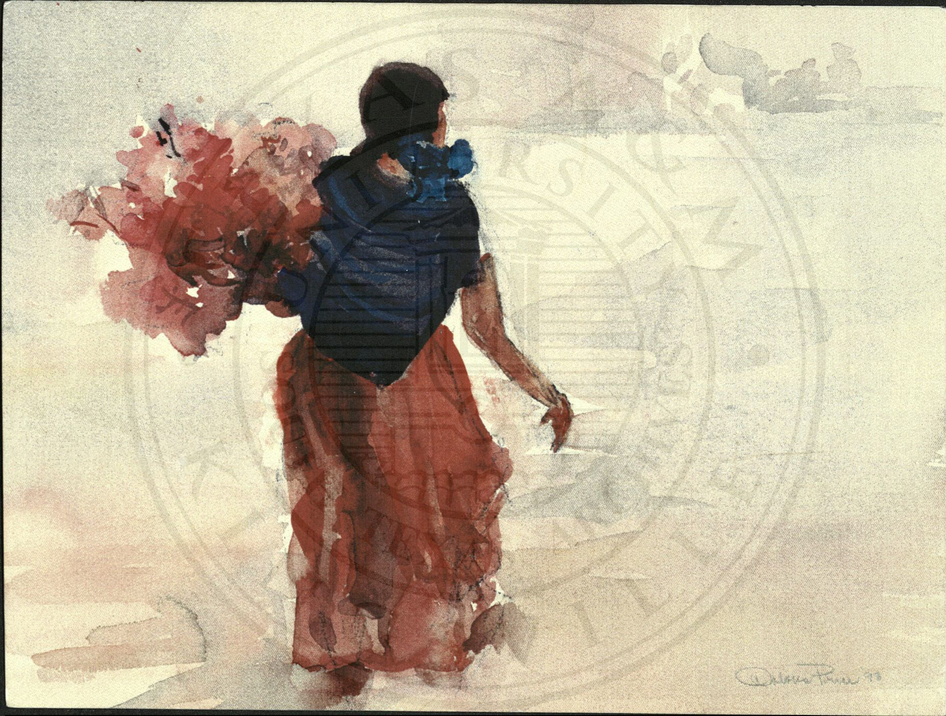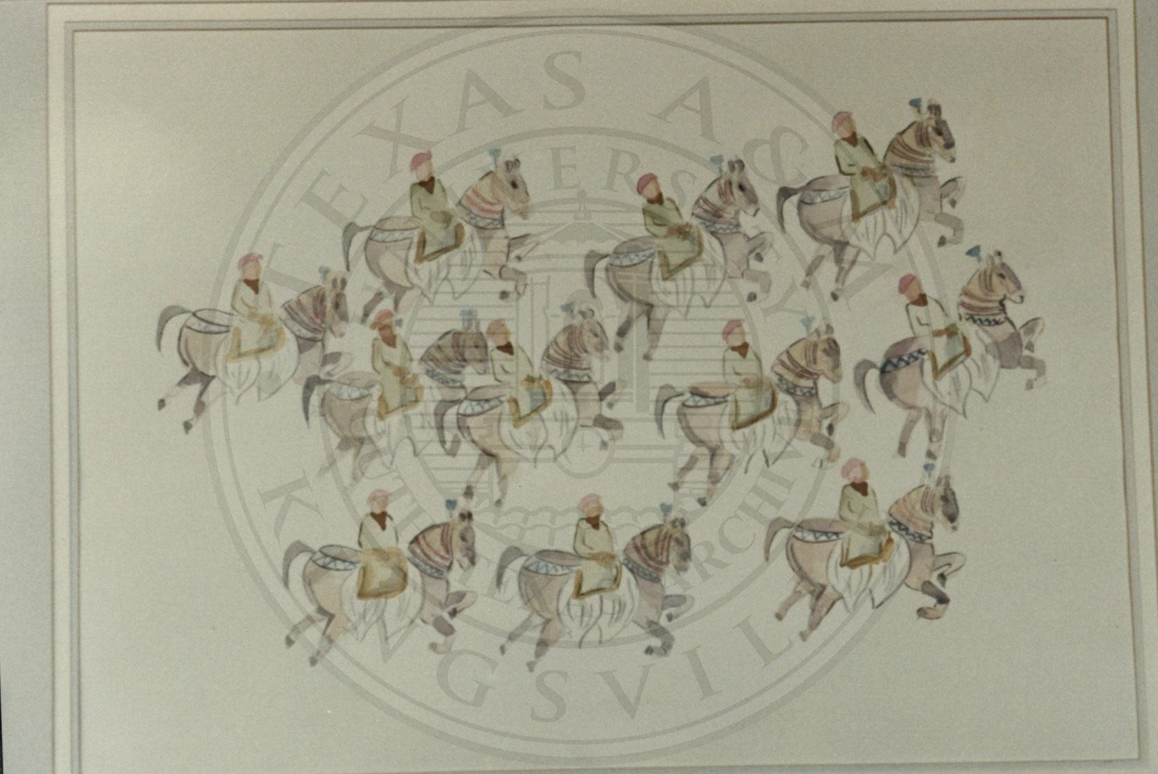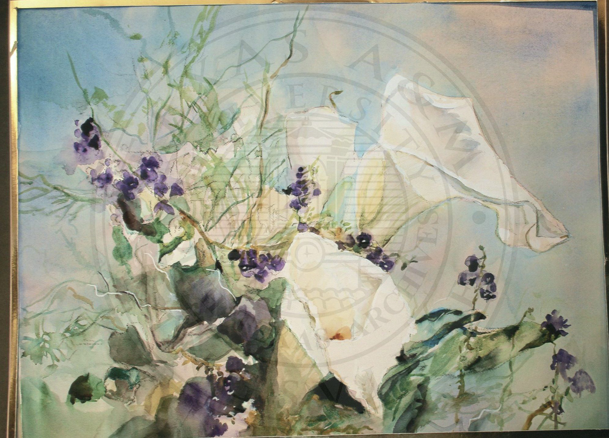 A watercolor for the event, "Out of Africa." This watercolor commemorated the 1990 Spohn Kleberg Memorial Hospital Gala Benefit. Proceeds of the gala will help purchase radiology equipment to meet the medical needs of the South Texas community. |