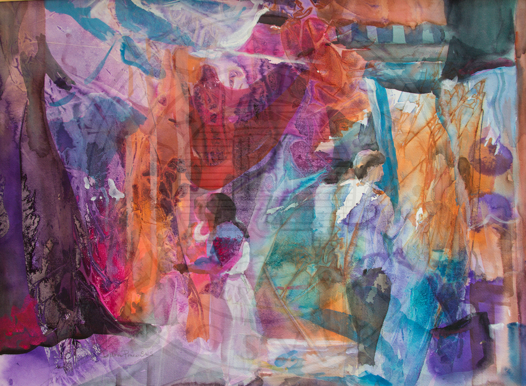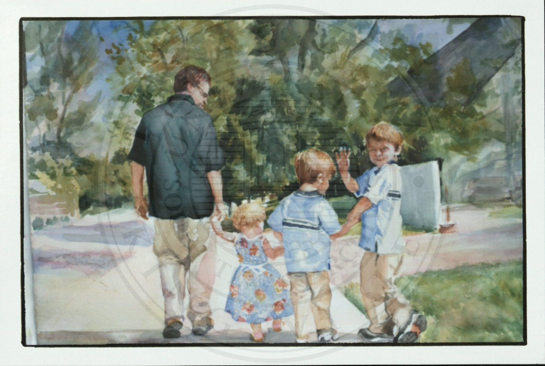 A watercolor of people and a tree. This is one of Dolores favorite paintings. |