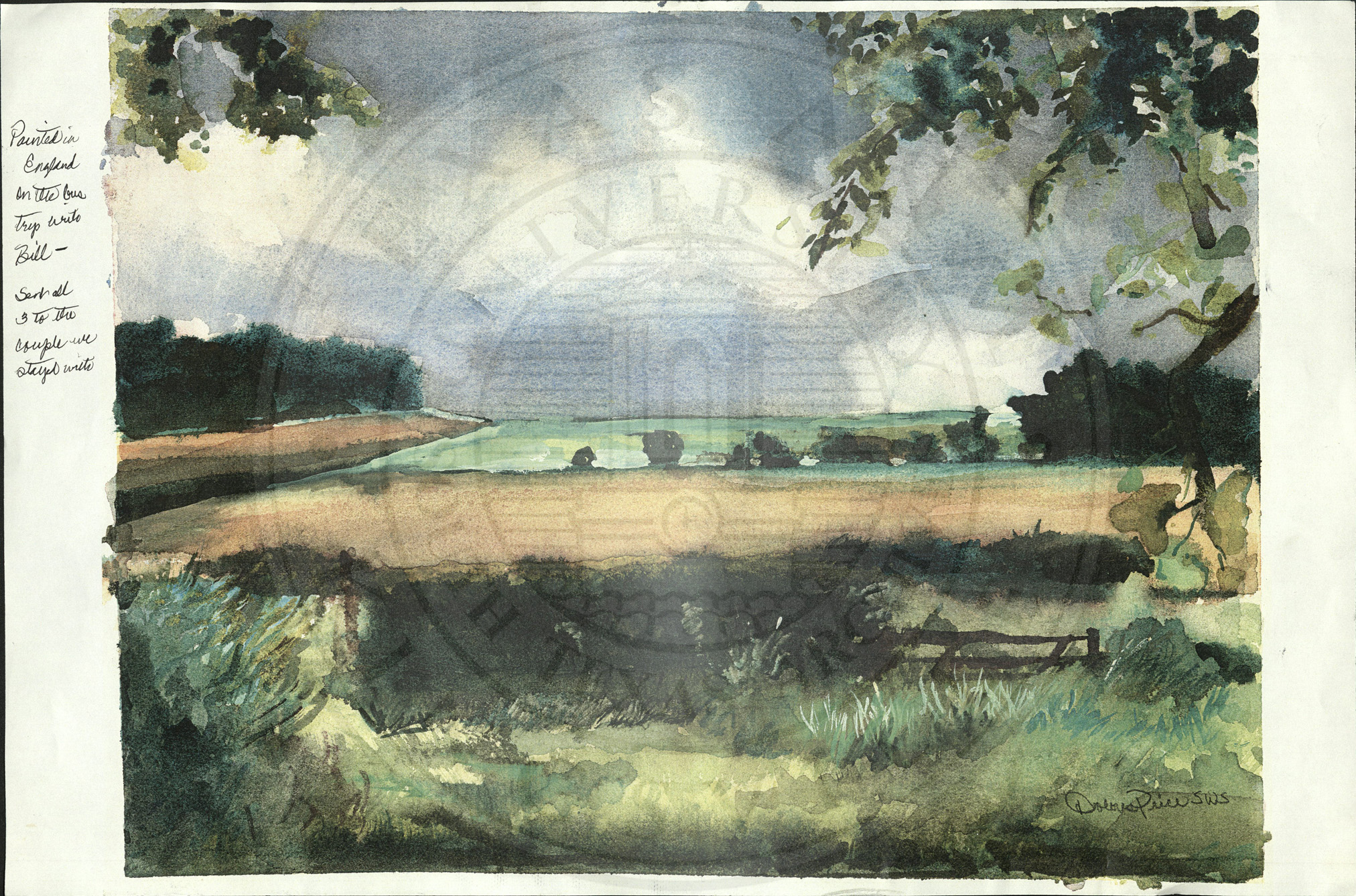 This is a watercolor Dolores painted in England on a trip she took with her husband. She gave this painting to the family she stayed with. |