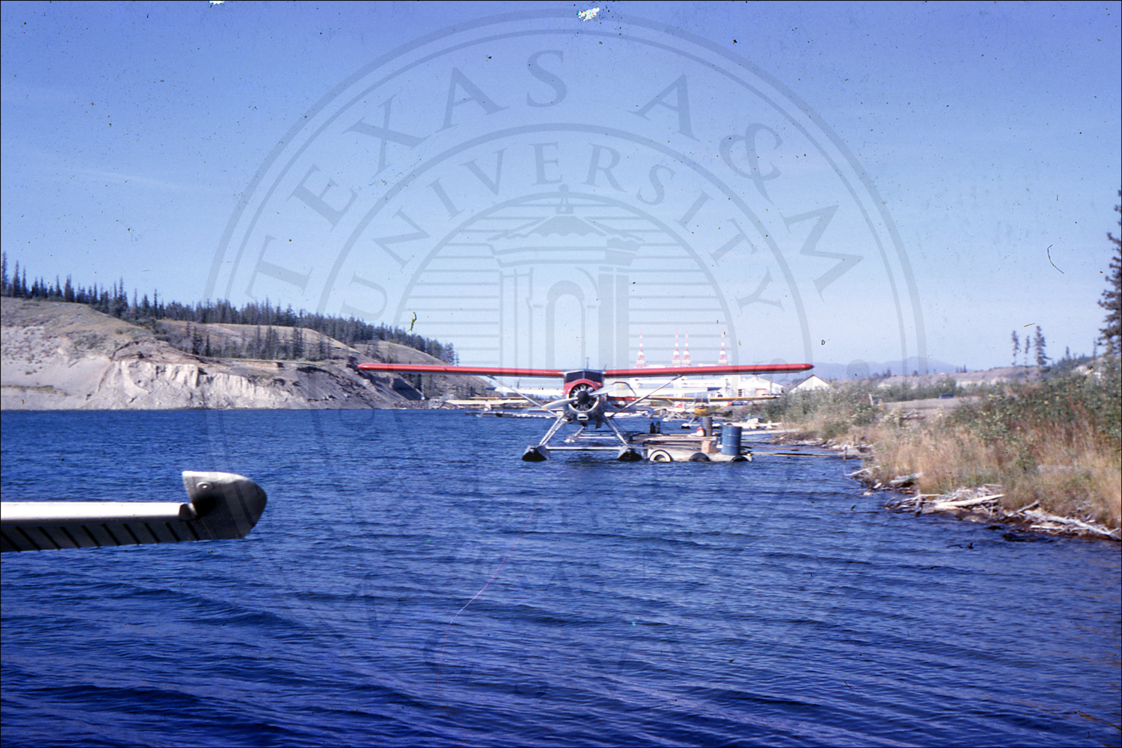 A picture of a plane on the lake |