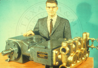 A2010-008.0077Collection: Homer C. Givens Collection Location: I-21-3 Box #1 | The new low cost 3 inch stroke KCA horizontal triplex waterflood pump. |  |