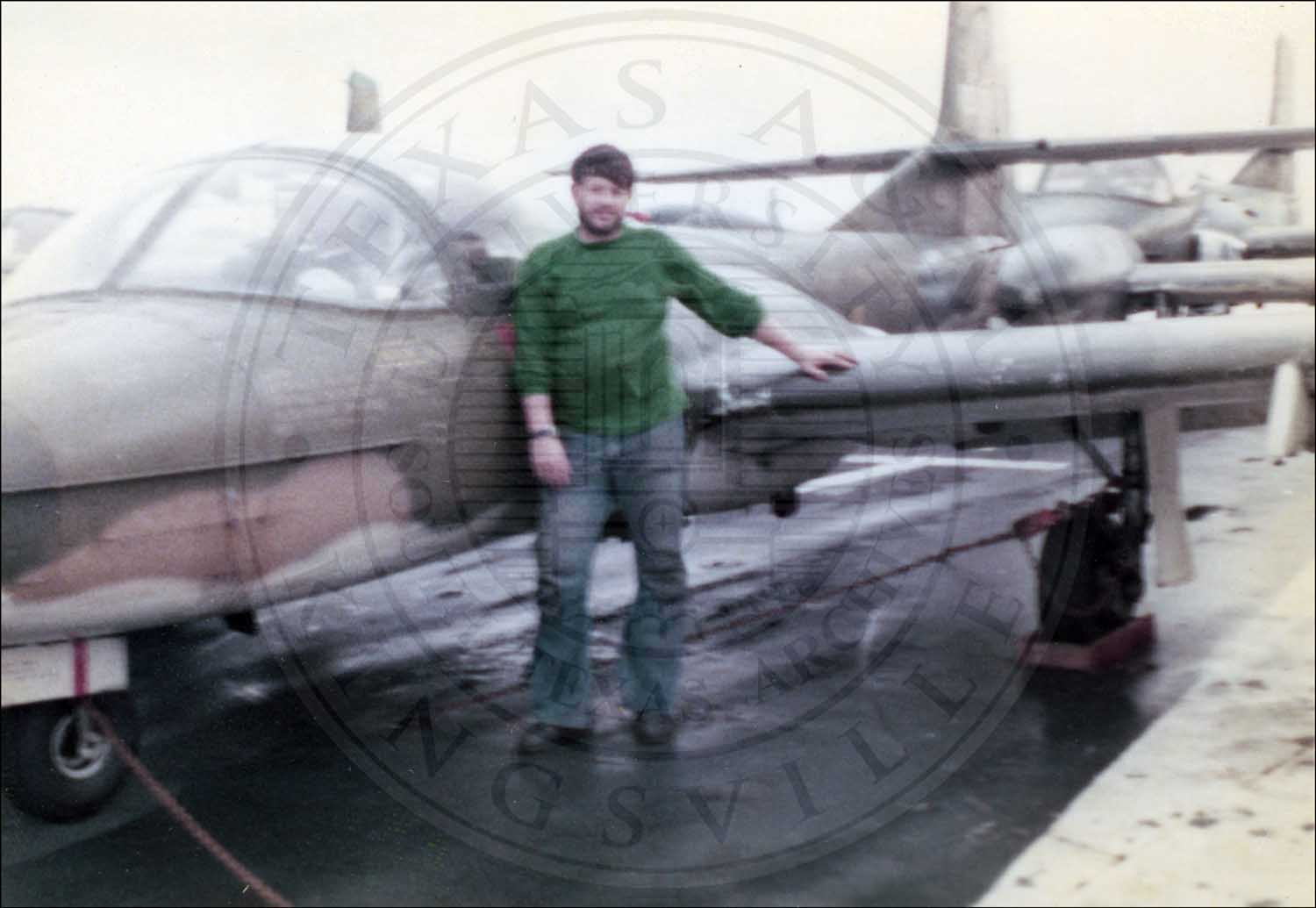 Russel Eugene Sampson standing next to a A-37. It was an Air Force trainer plane. |