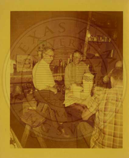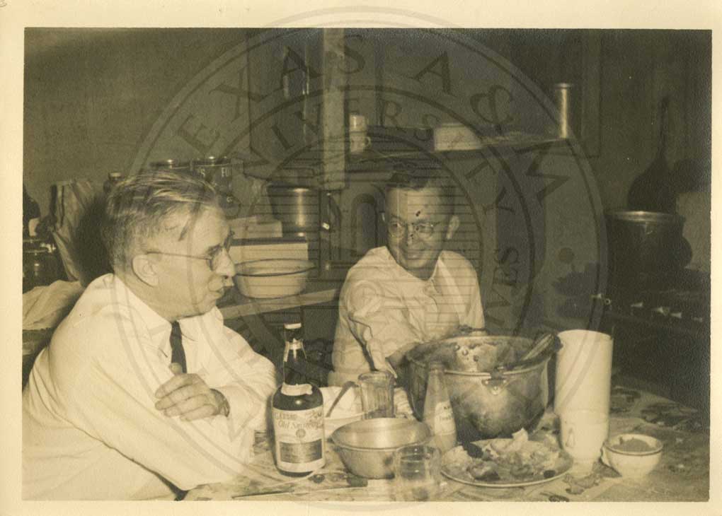 L.C. McRoberts and Willis Coleman seated in the back room of the butcher shop |