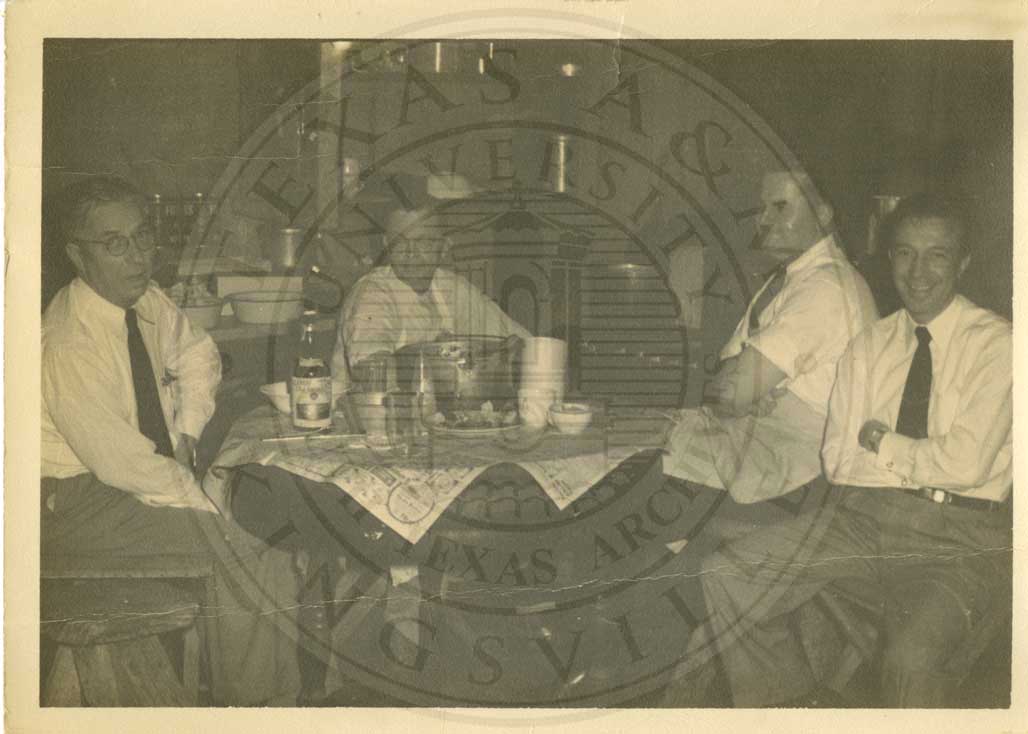 (R-L) unidentified man wearing glasses, Otto Zwerneman, Willis Coleman, and L.C. McRoberts all seated around a table |