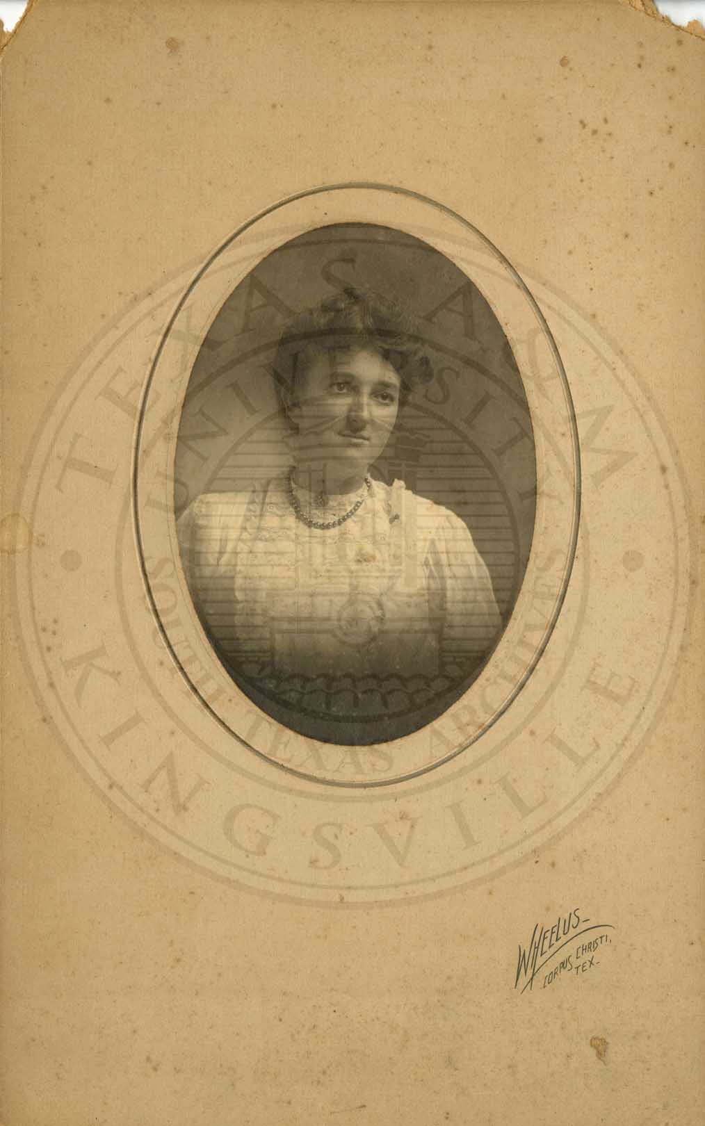 Portrait of a young lady, “I love you Elizabeth” is inscribed; Corpus Christi, TX. |