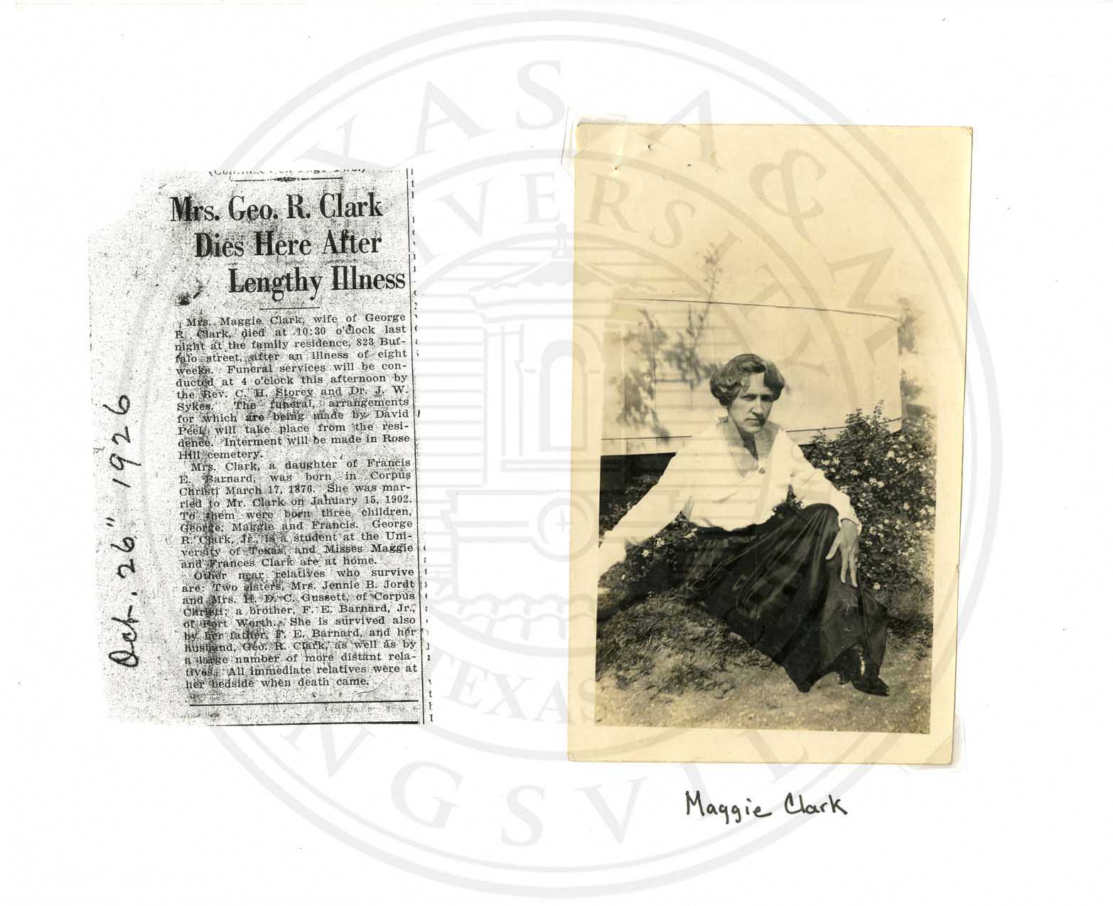 Maggie Clark as an adult and a newspaper article of her death.. |