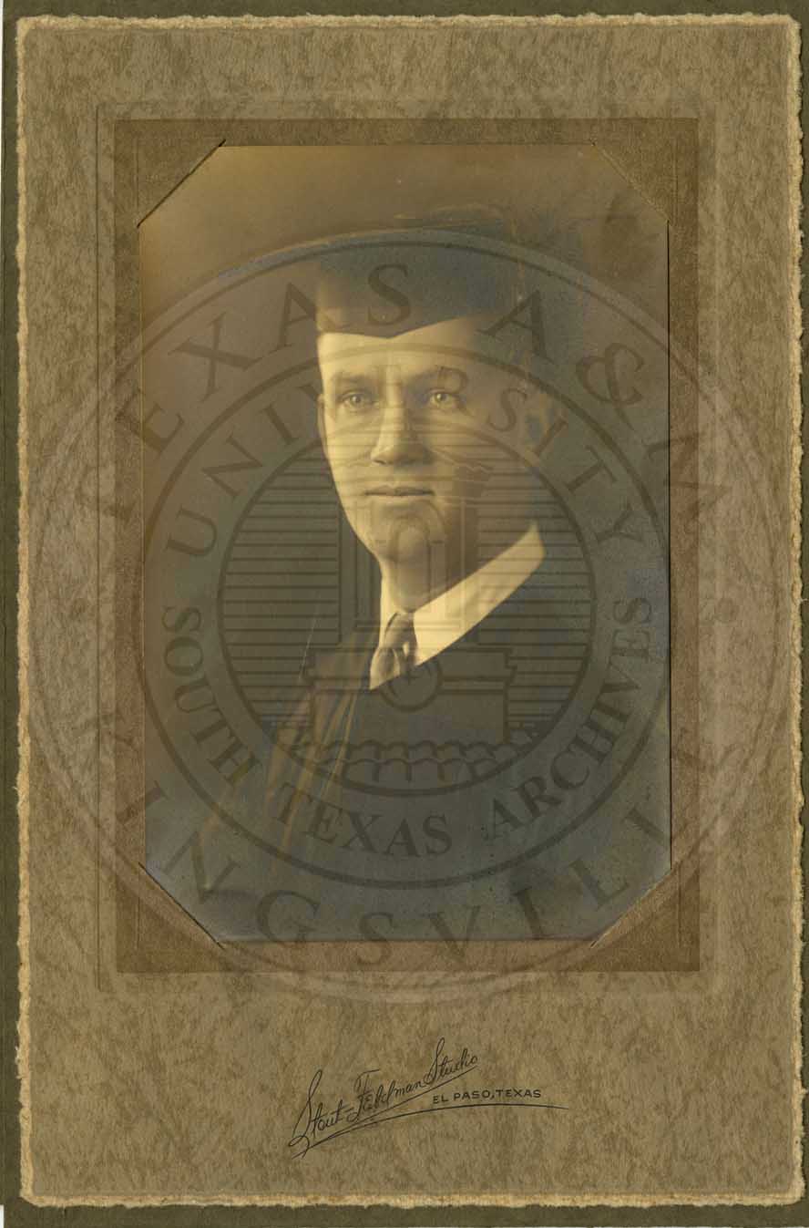 Unidentified young man in graduation cap and gown; El Paso, TX. |