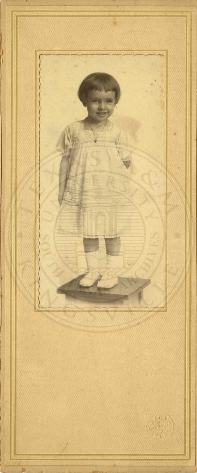 Portrait of Mary Margaret Gussett as a little girl; Corpus Christi, TX. |