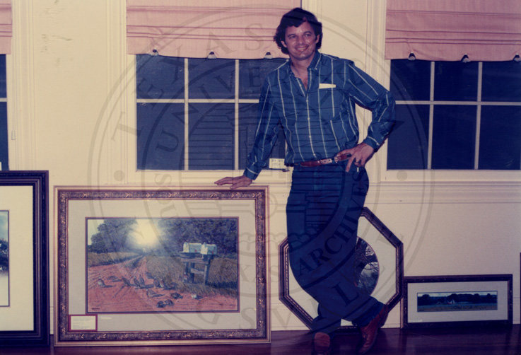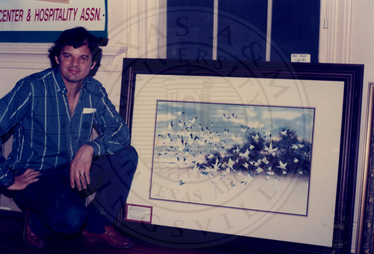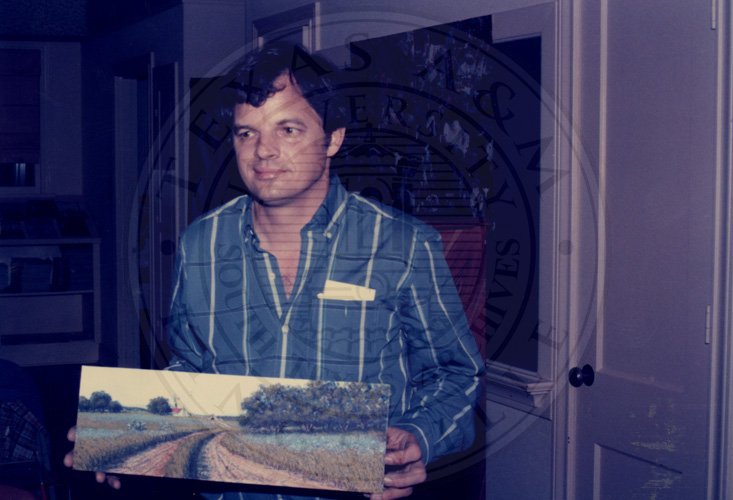 Unknown man looking at a paint picture.