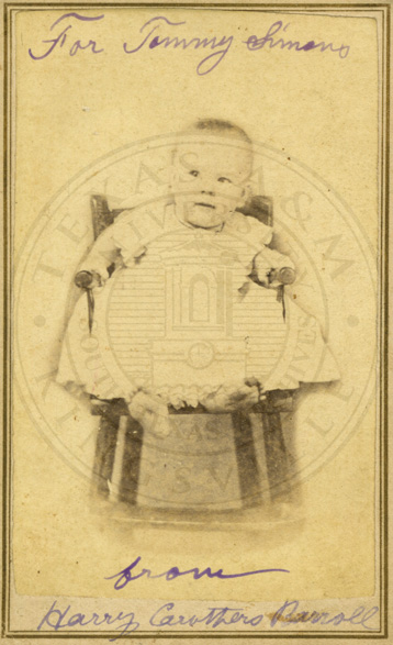 For Tommy Simons From Harry Carothers Barroll On back says 8 mouths old when taken |