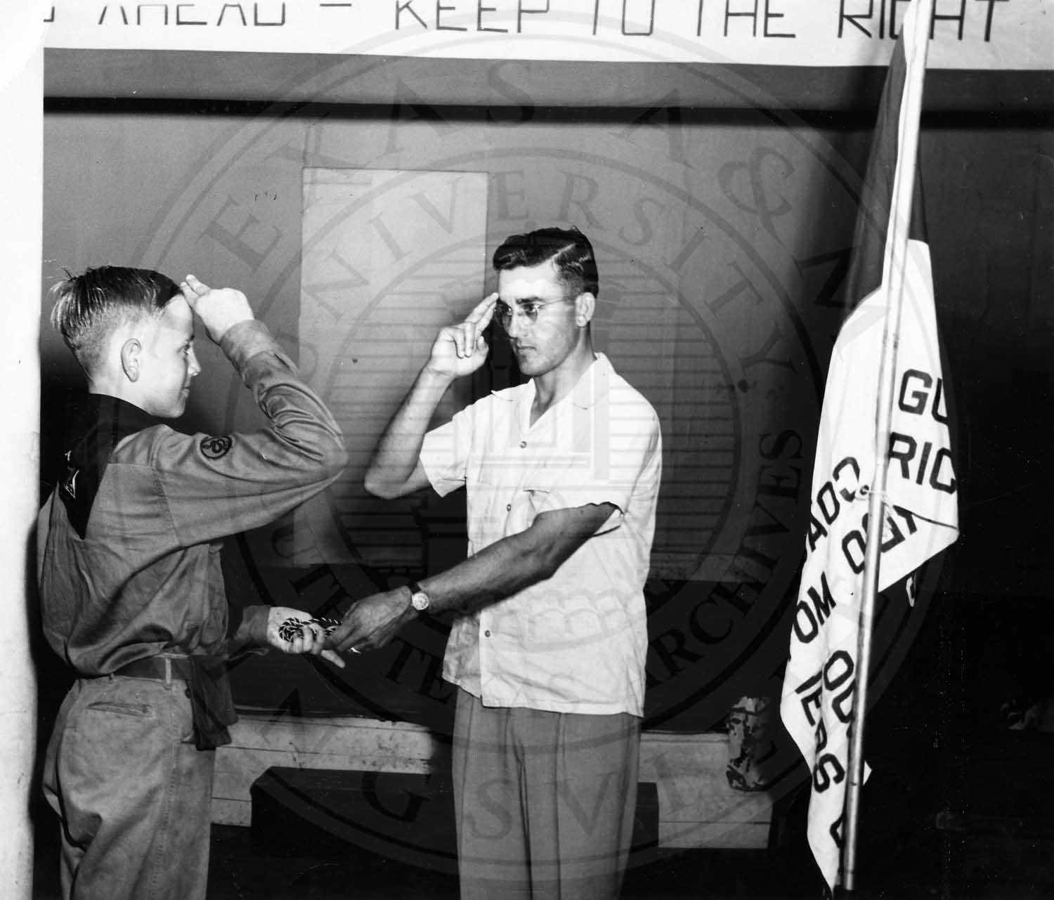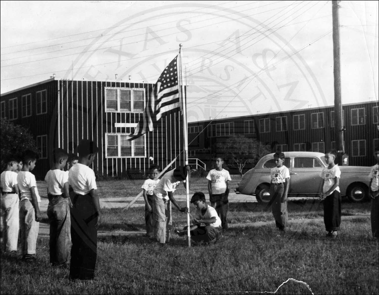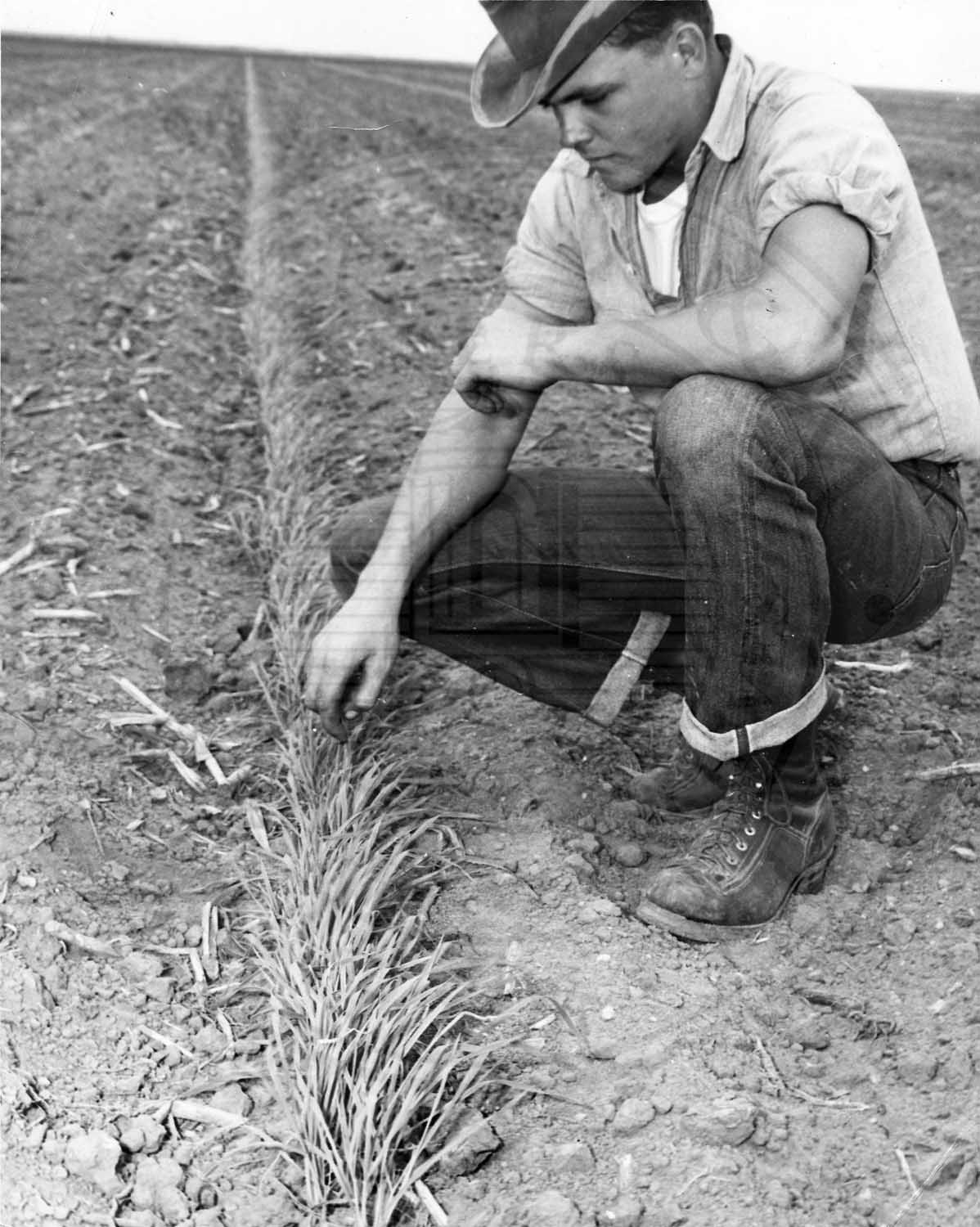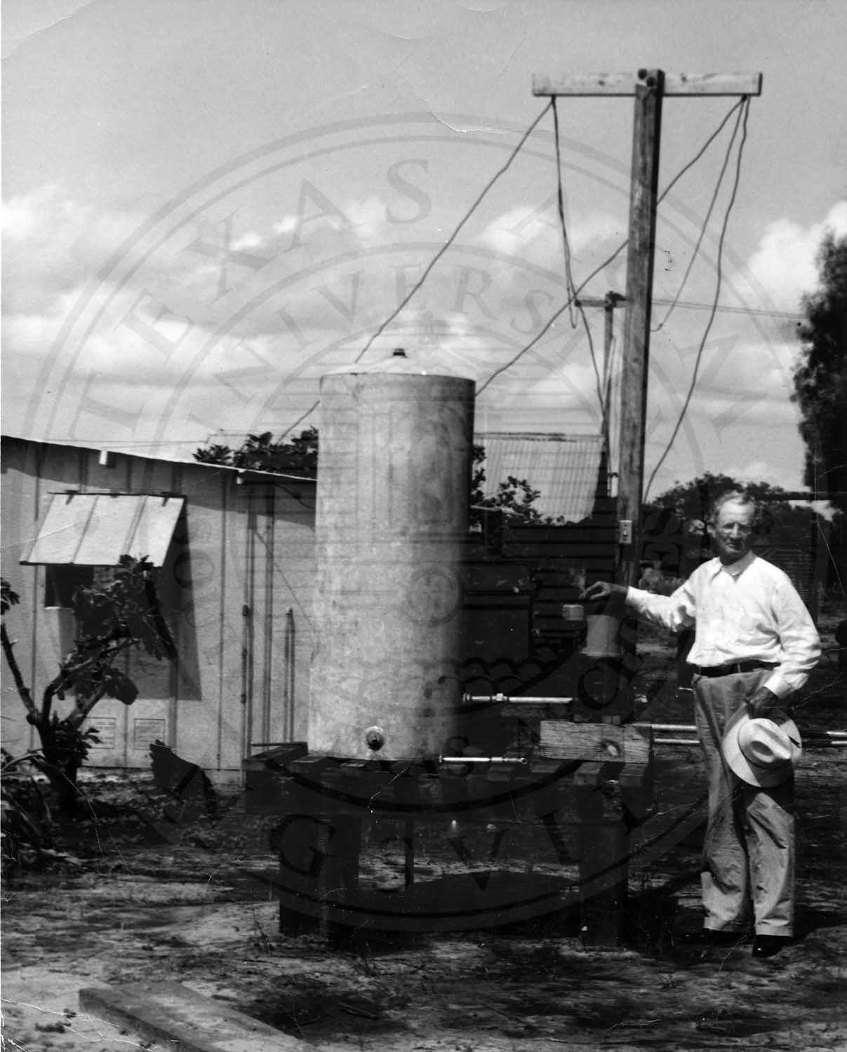 "Rev. O. J. Cole Installs an Outlet on his New Pressure Tank on his Well Recently Drilled." From Kleberg County Farm Notes in 1949.