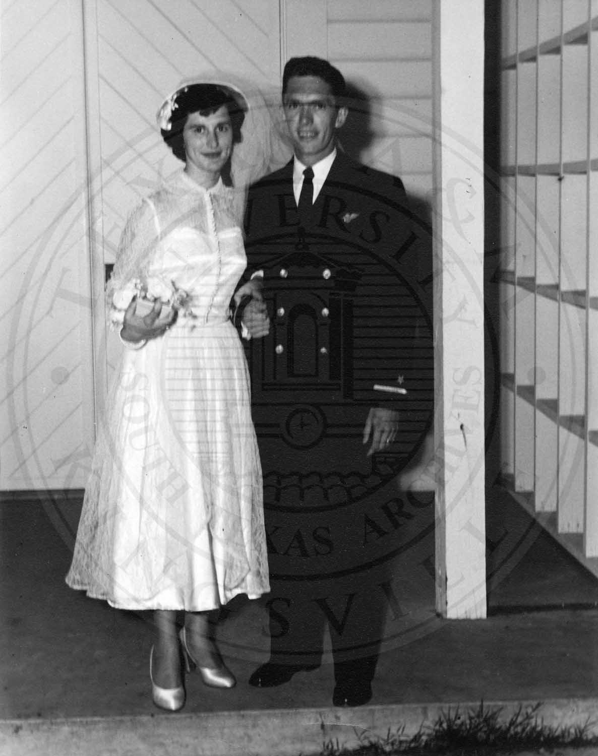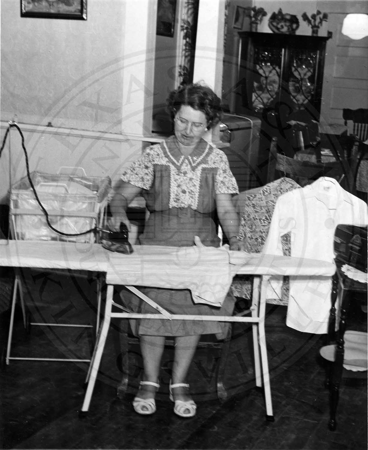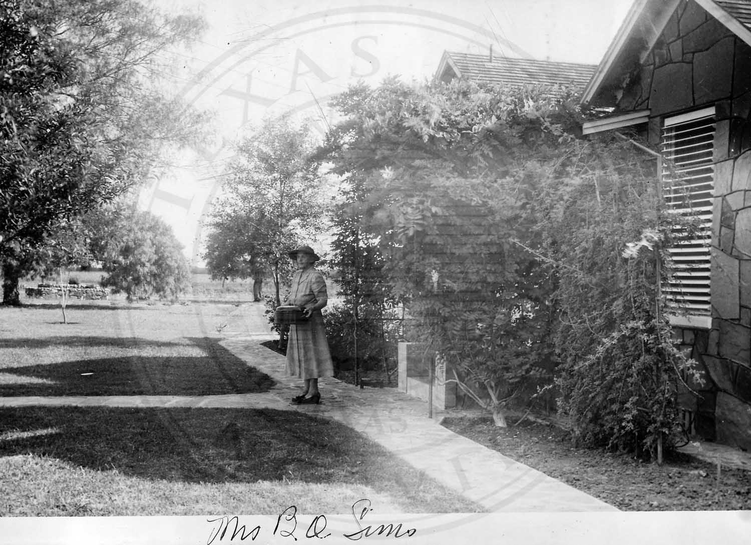 Mrs. B.O. Sims standing in front of her Ricardo home. |