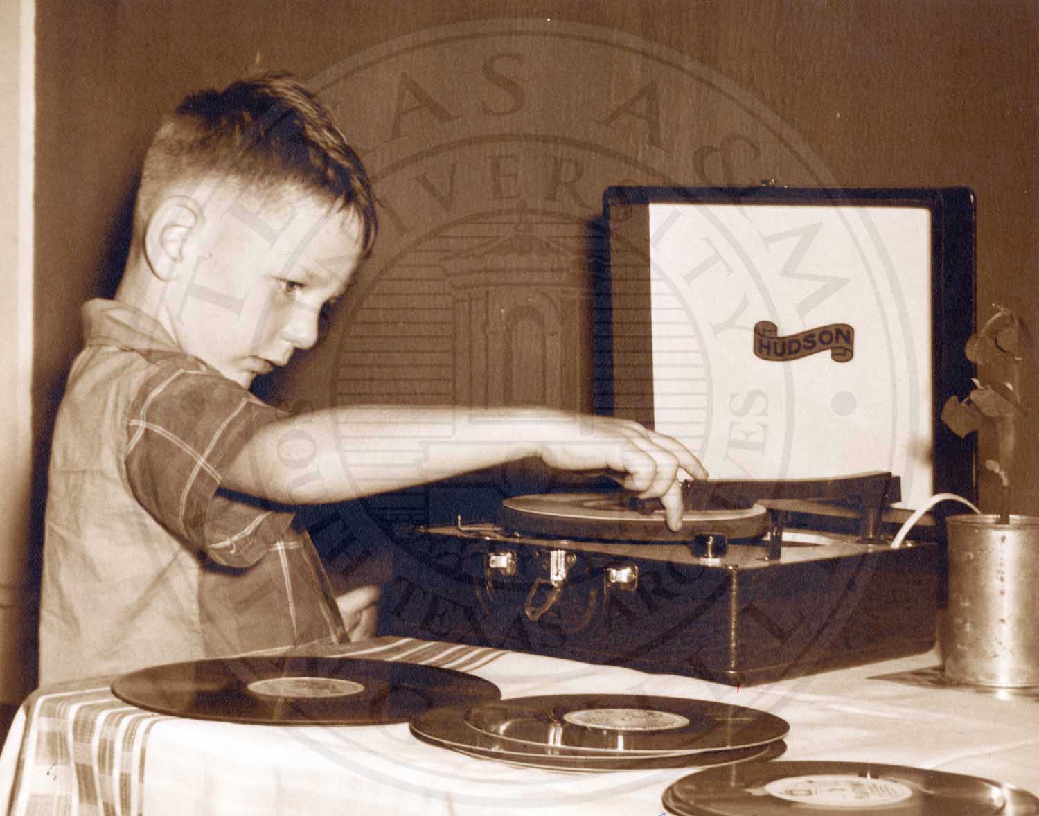 Wayne Lamb as child playing record. 1952 noted on photo. |