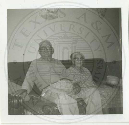 Photo of Mr. and Mrs. Clemente Hinojosa ages 84 and 77 current owners of the Old Amargosa Ranch. Taken in 1966. She lived in old block house when she was a child. |