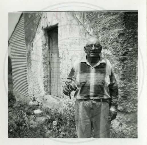 Photo of Mr. Clemente Hinojosa with the brass key that opened the door to the Old Amargosa Ranch. |