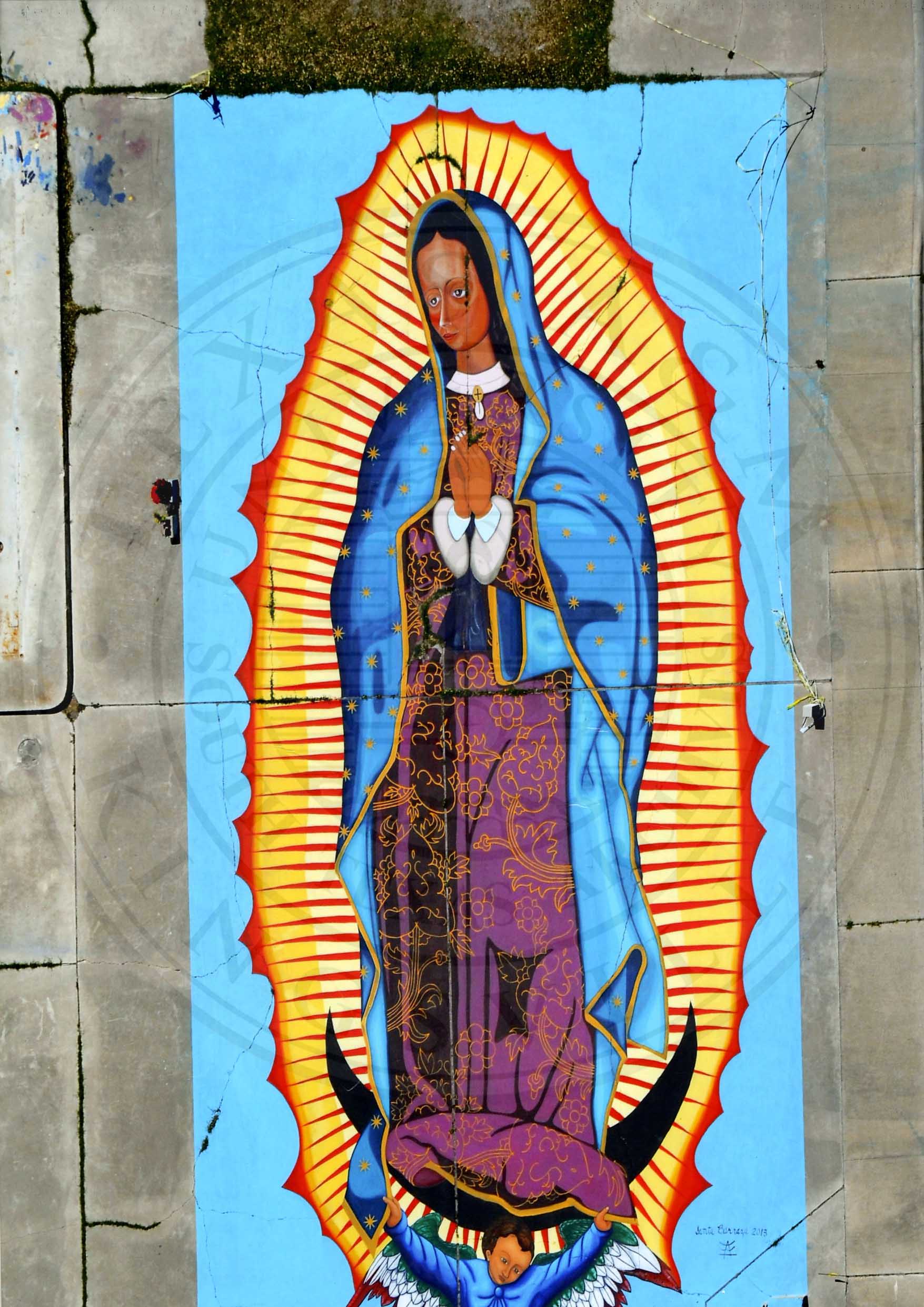 Aerial view of a chalk drawing of the Virgin Mary in Kingsville, Texas. |