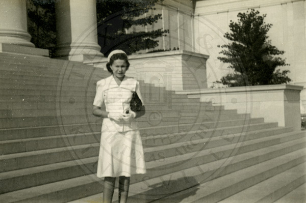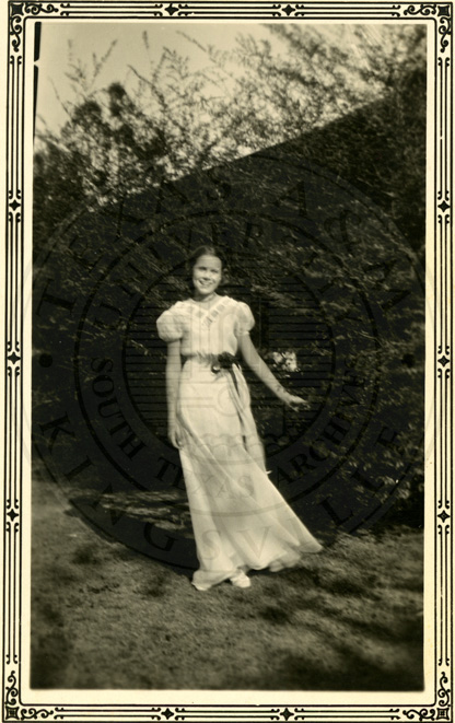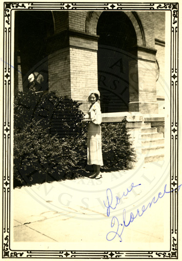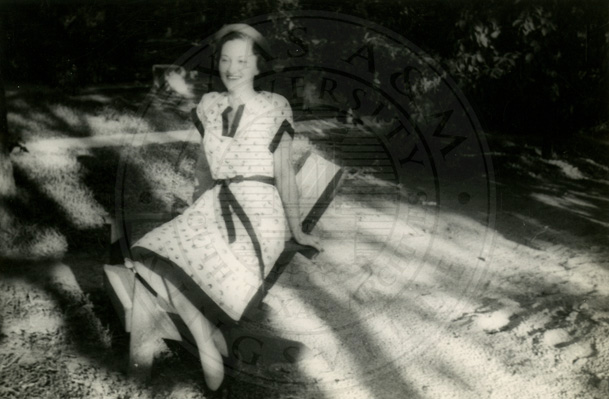 A2005-024.0049Collection: Benjamin F. Wilson Jr. Collection Location: A2005-024 STA Photo file | Florence Wilson at Texas College of Arts and Industries, June 1933.  "Love Florence" is written on the front of the photograph. |  |