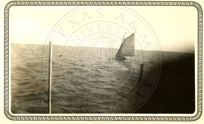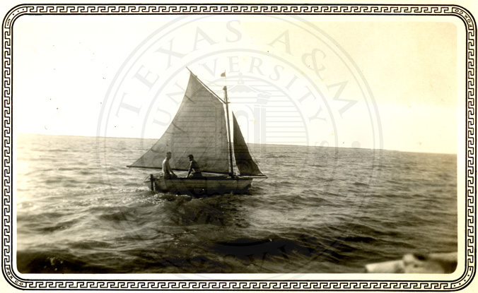 A2005-024.0043Collection: Benjamin F. Wilson Jr. Collection Location: A2005-024 STA Photo file | Two unidentified men sailing off the coast of South Texas. |  |