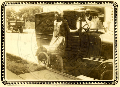 A2005-024.0058Collection: Benjamin F. Wilson Jr. Collection Location: A2005-024 STA Photo file | Florence Wilson near early Ford (?) car. |  |