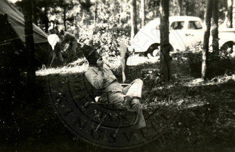 A2005-024.0060Collection: Benjamin F. Wilson Jr. Collection Location: A2005-024 STA Photo file | Unidentified man in chair at training camp. |  |