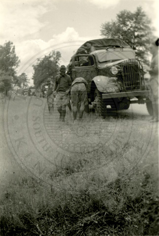 A2005-024.0065Collection: Benjamin F. Wilson Jr. Collection Location: A2005-024 STA Photo file | Unidentified men in training camp in uniform, a tractor is being driven next to them. |  |