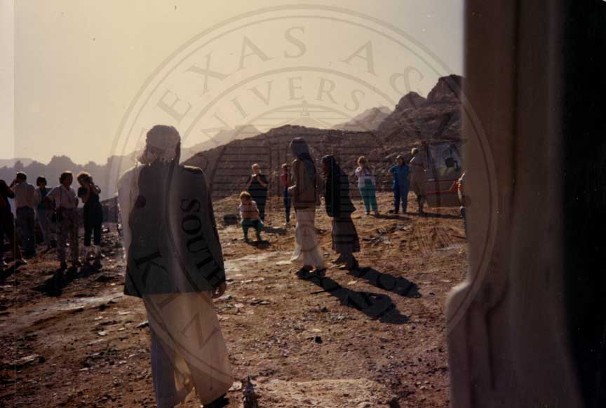 Candace Jefferson's travels to Yemen in 1988. The Sabaean Moon Temple at Marib [Yemen.] According to legend, marib was the capital of the Sabaean kingdom and ruled by the biblical Queen of Sheba. Sabaean inscriptions refer to it as the Temple of Almaqah, the moon god who was the principal deity at Marib. |