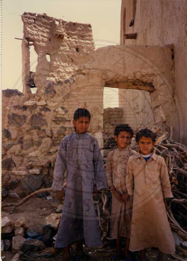 Candace Jefferson's travels to Yemen in 1988. Three young boys in the ruins in the old city of Marib. |