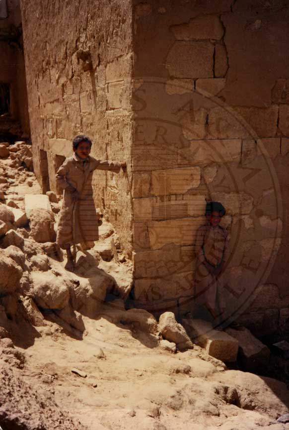 Candace Jefferson's travels to Yemen in 1988. Two young boys playing in the ruins of the old city of Marib. |