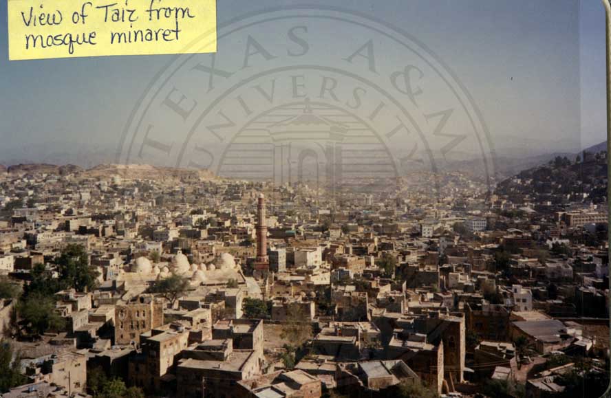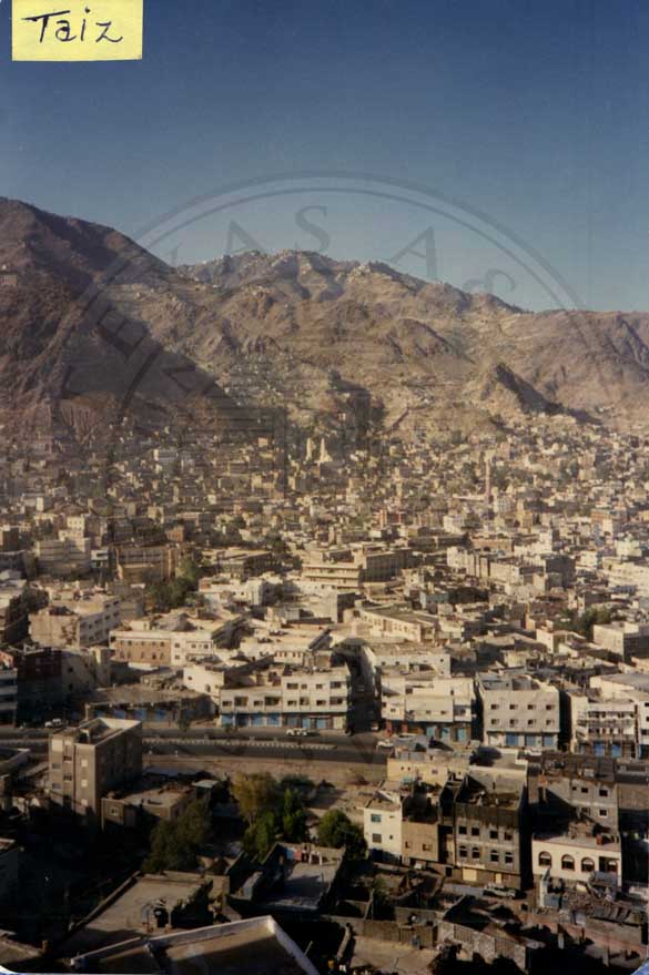 Candace Jefferson's travels to Yemen in 1988 City of Taiz in southwestern Yemen. It is located in the Yemeni Highlands, near the port city of Mocha on the Red Sea. |