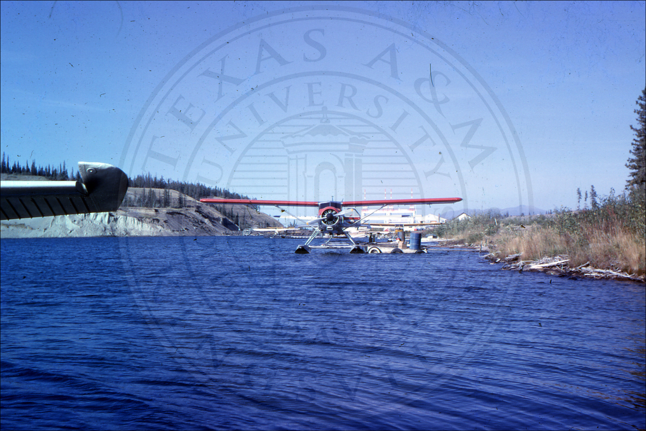 A picture of a plane on the lake |