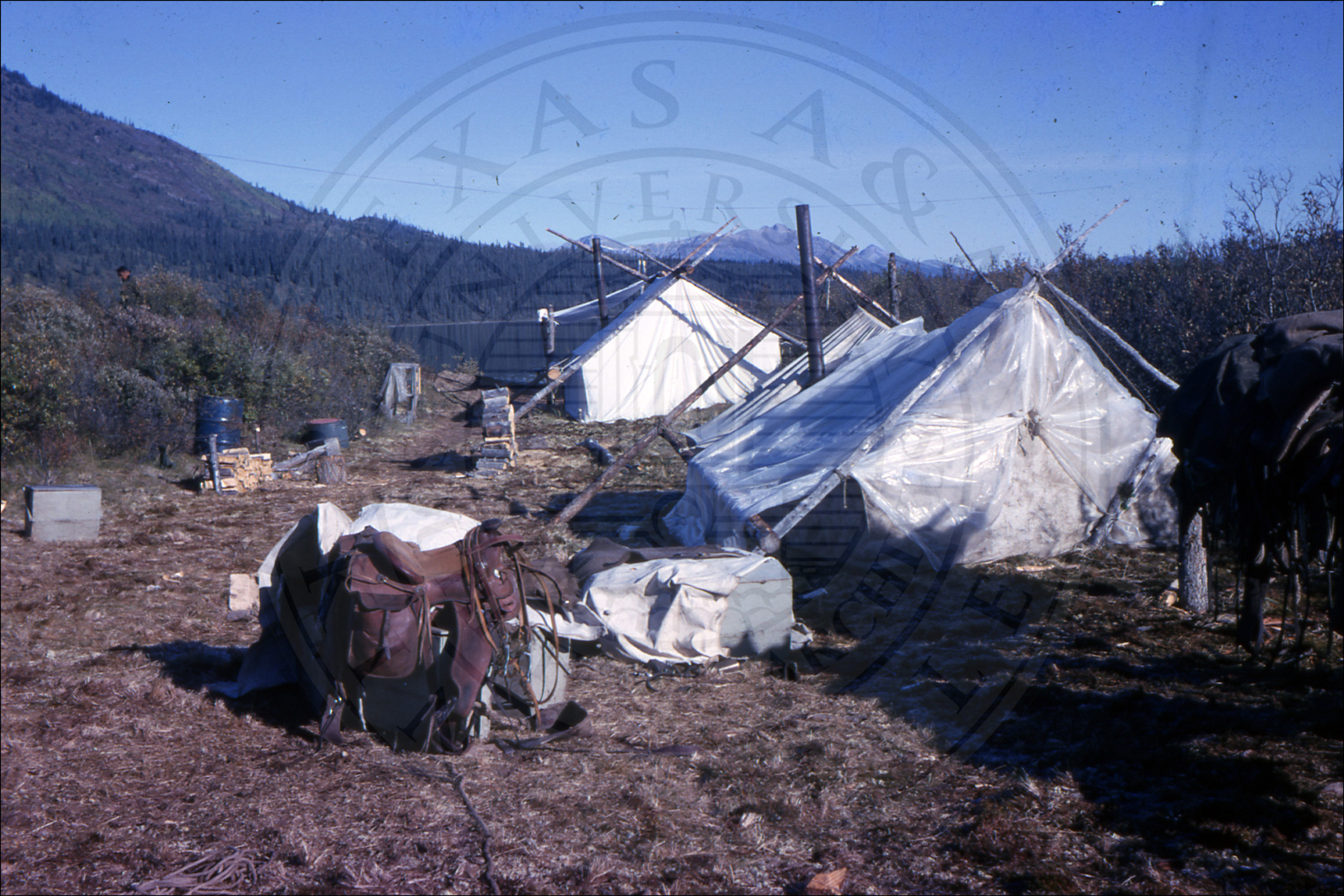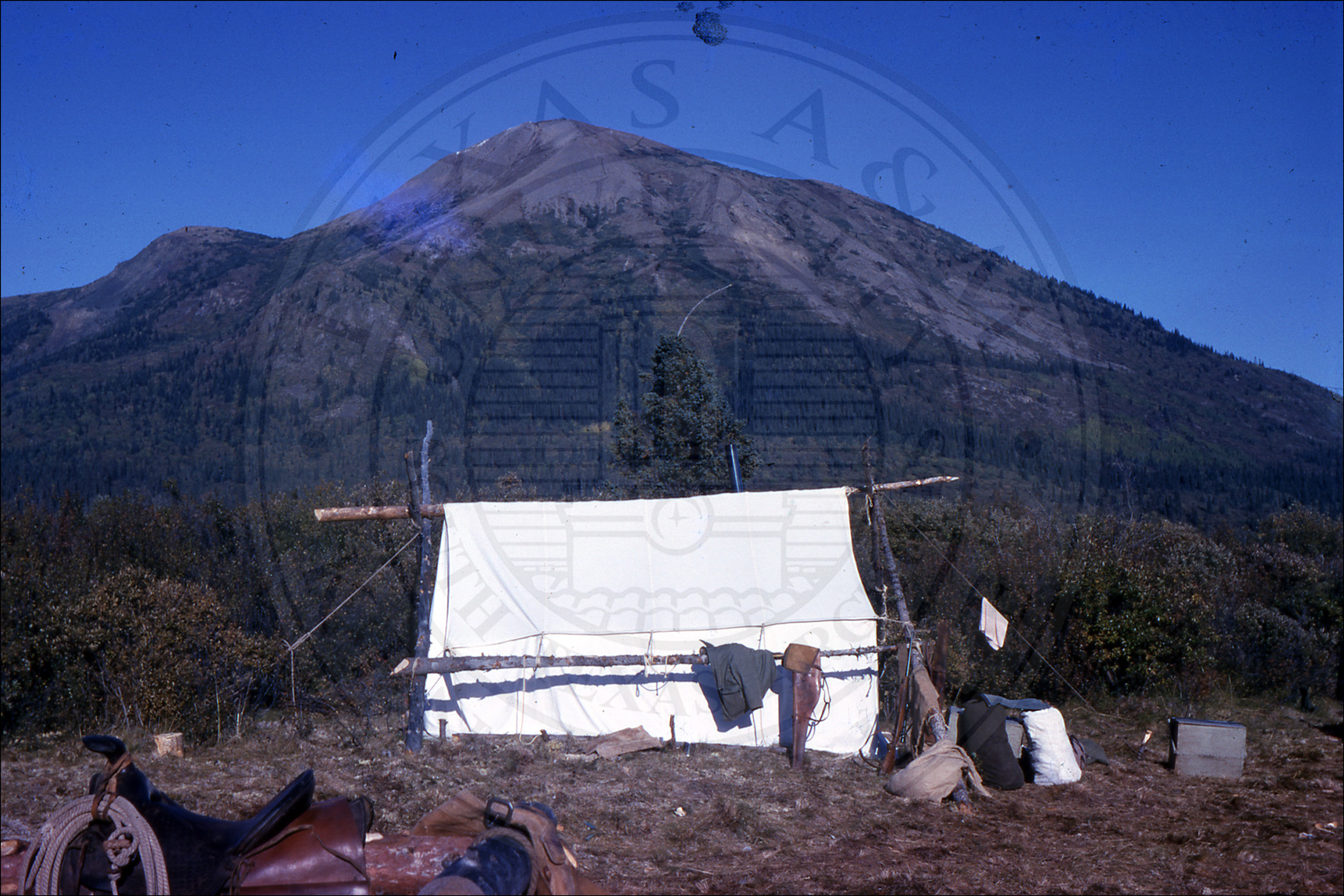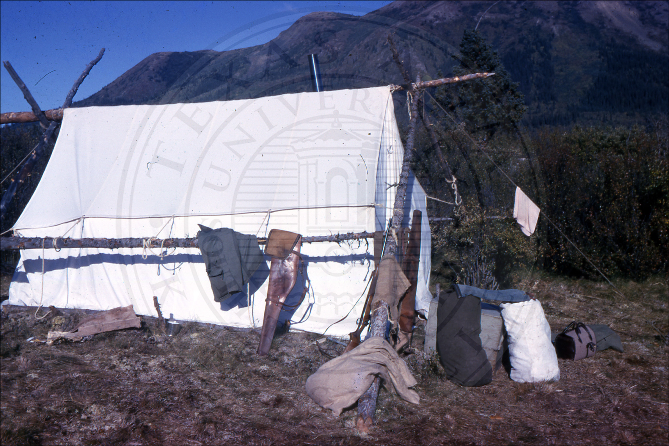 A camp and tent on a mountain |