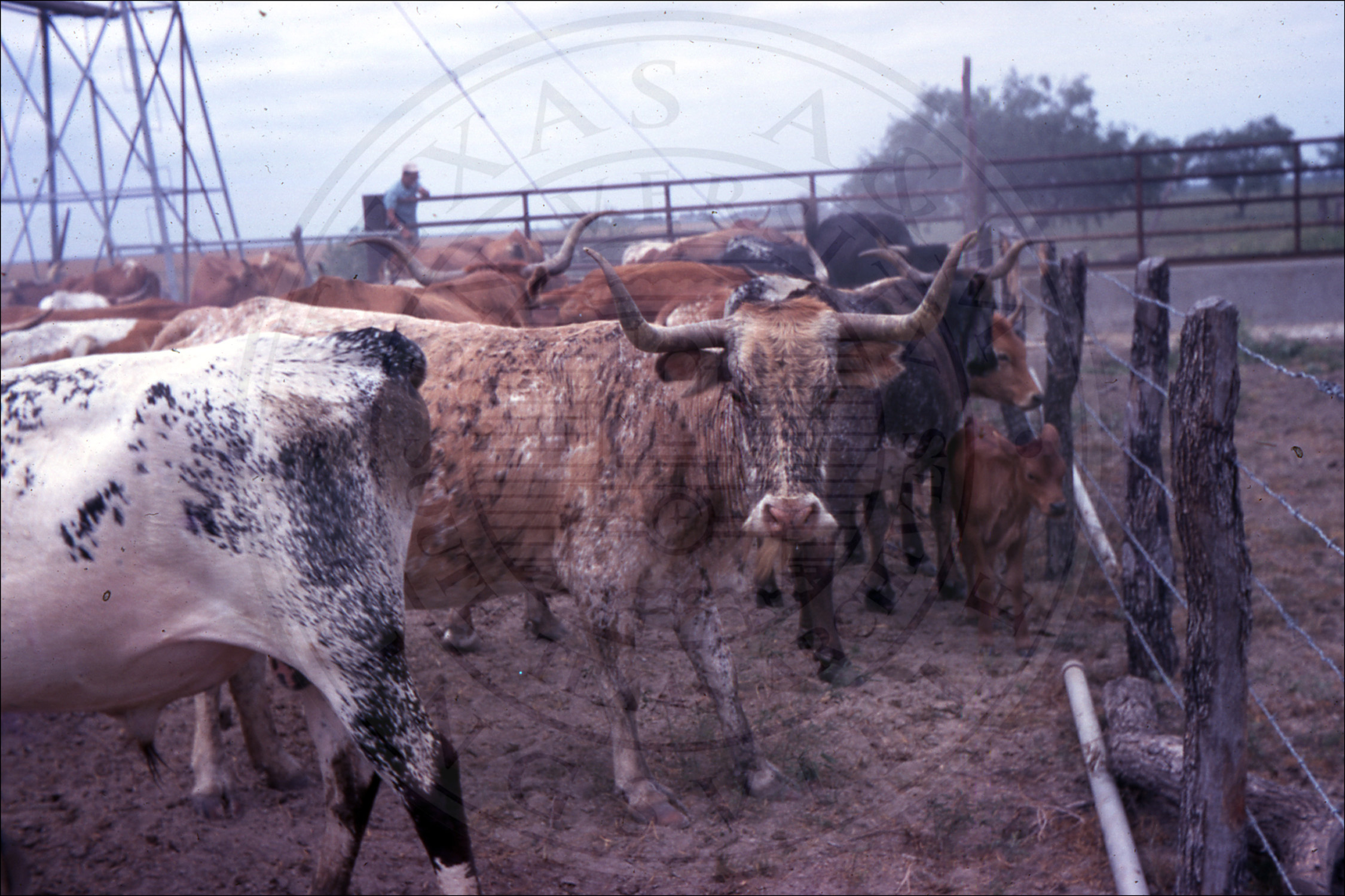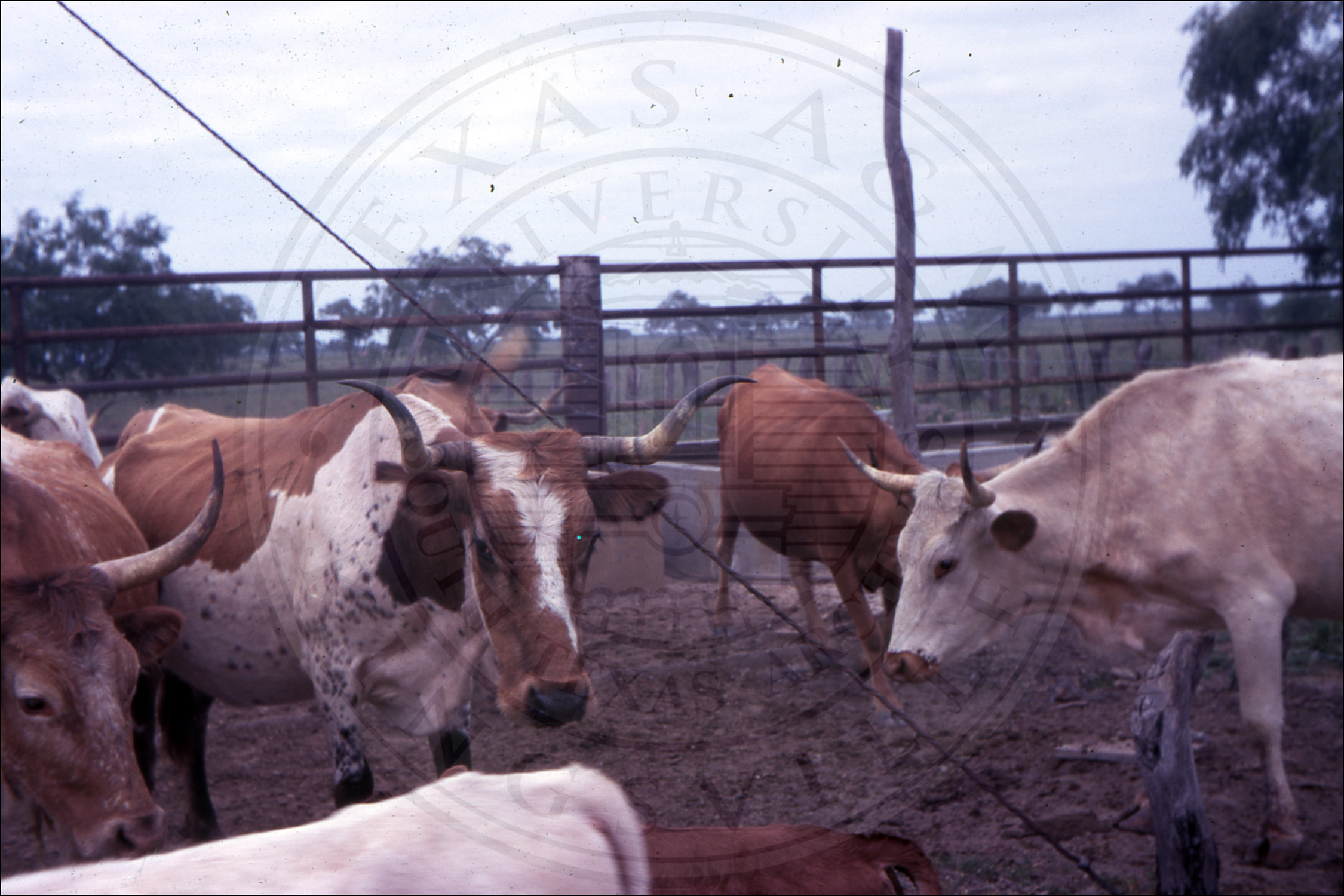 Longhorns in pen |
