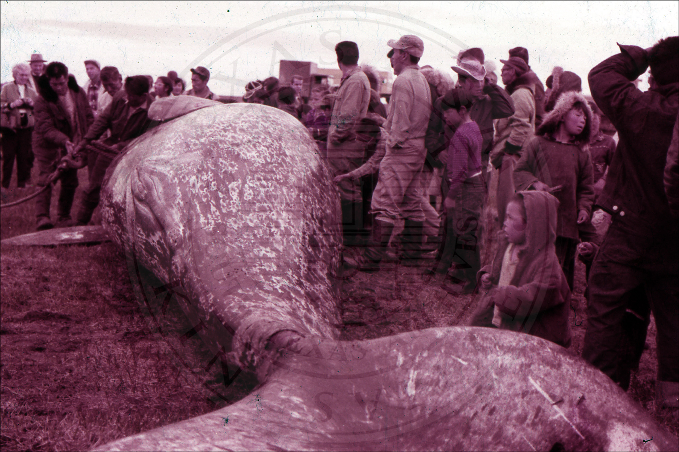 A humpback whale caught by a group of people |