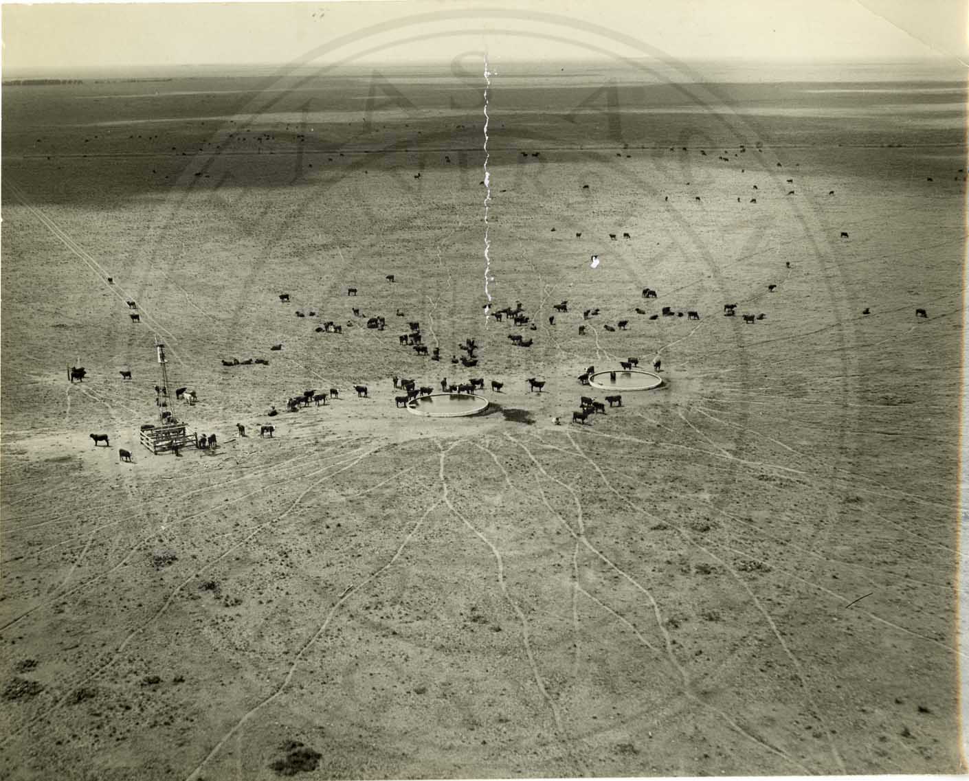 Cattle at water troughs. |